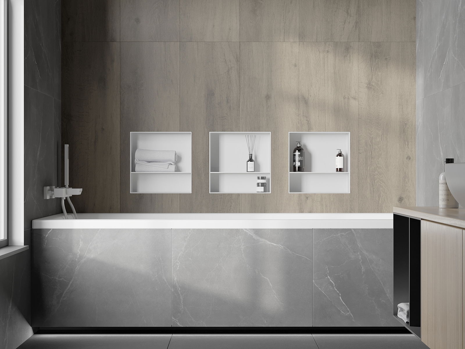 Įdiegimo į sieną arba specialiai paruoštoje pastate galimybė. Tai ypač modernus ir funkcinis sprendimas, leidžiantis sutaupyti vietos ir suderinti produktą su interjero estetika ir sukurti nuoseklią kompoziciją.