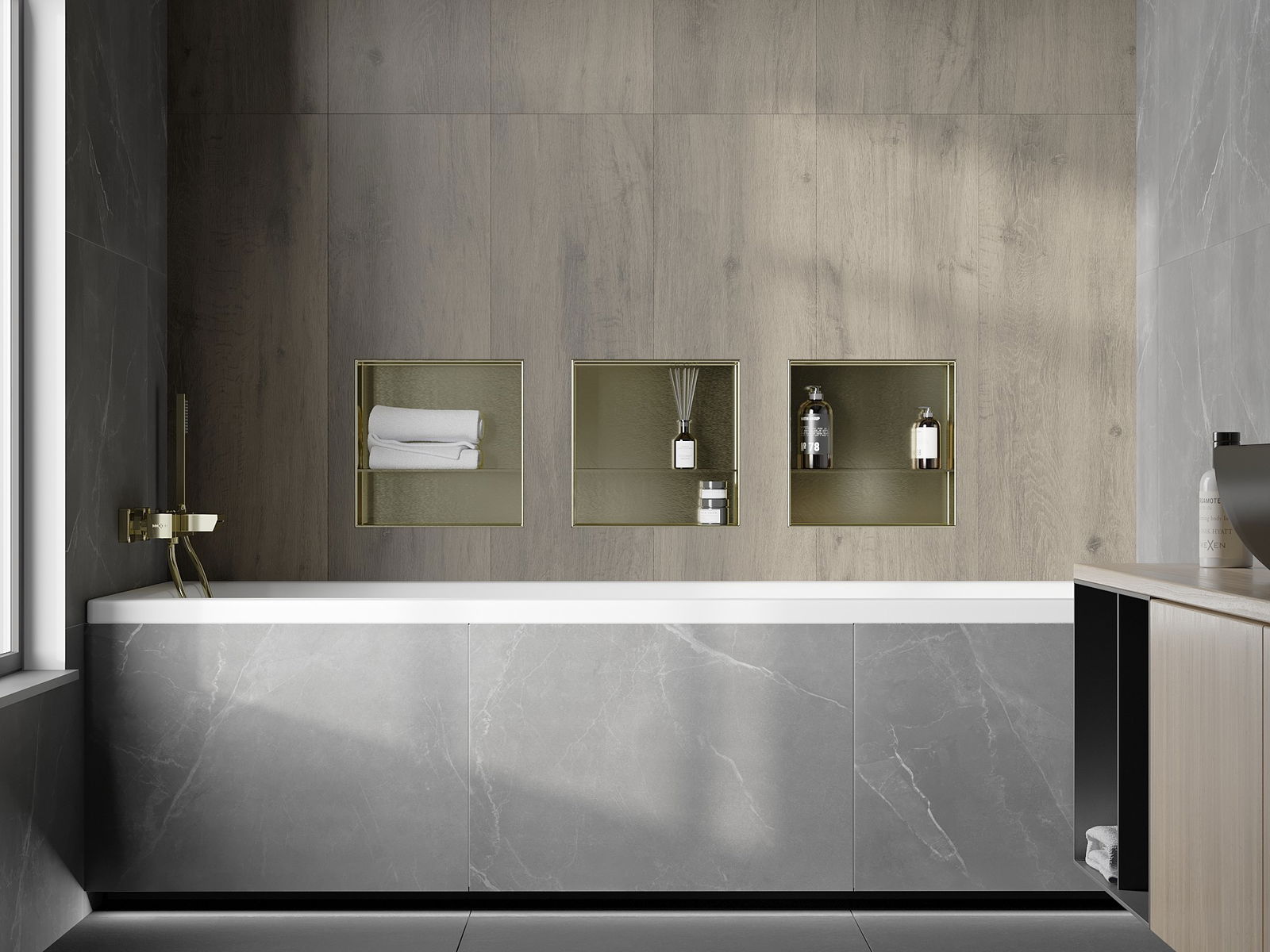 Galimybė montuoti sienoje arba specialiai paruoštoje konstrukcijoje. Tai itin modernus ir funkcionalus sprendimas, leidžiantis sutaupyti erdvę bei priderinti gaminį prie interjero estetikos ir sukurti vientisą kompoziciją.