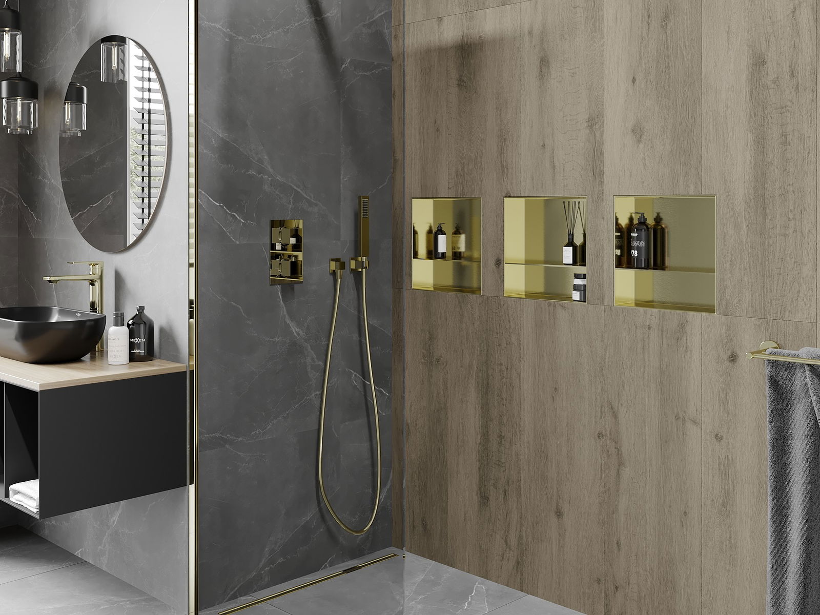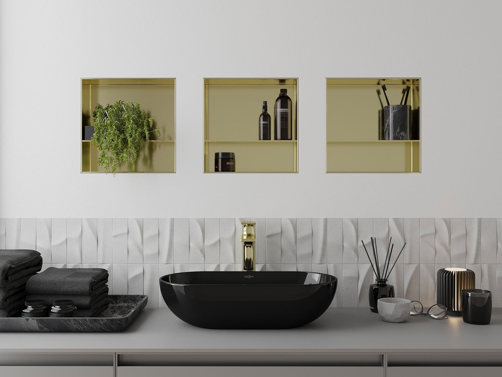 Mexen X-Wall-NR nišos lentyna be apvado su lentyna 30 x 30 cm, auksinė šukuota - 1951303010S