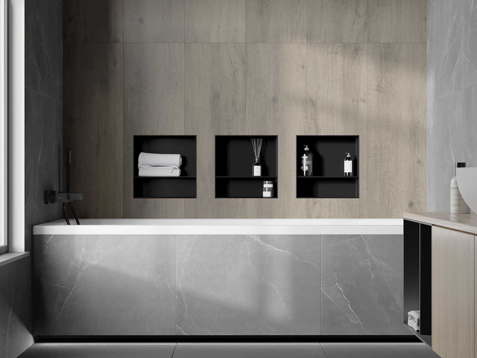 Įdiegimo į sieną arba specialiai paruoštoje pastate galimybė. Tai ypač modernus ir funkcinis sprendimas, leidžiantis sutaupyti vietos ir suderinti produktą su interjero estetika ir sukurti nuoseklią kompoziciją.