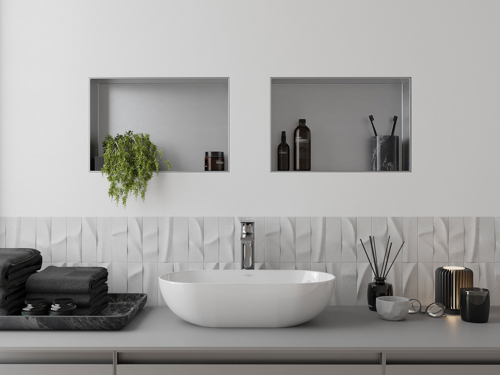 Mexen X-Wall-NR įmontuojama lentyna be kraštelių 45 x 30 cm, nerūdijantis plienas - 1911453010