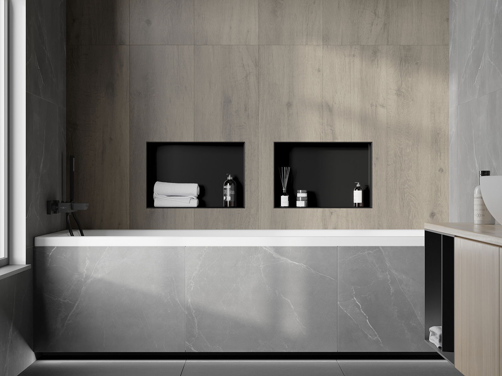 Įdiegimo į sieną arba specialiai paruoštoje pastate galimybė. Tai ypač modernus ir funkcinis sprendimas, leidžiantis sutaupyti vietos ir suderinti produktą su interjero estetika ir sukurti nuoseklią kompoziciją.
