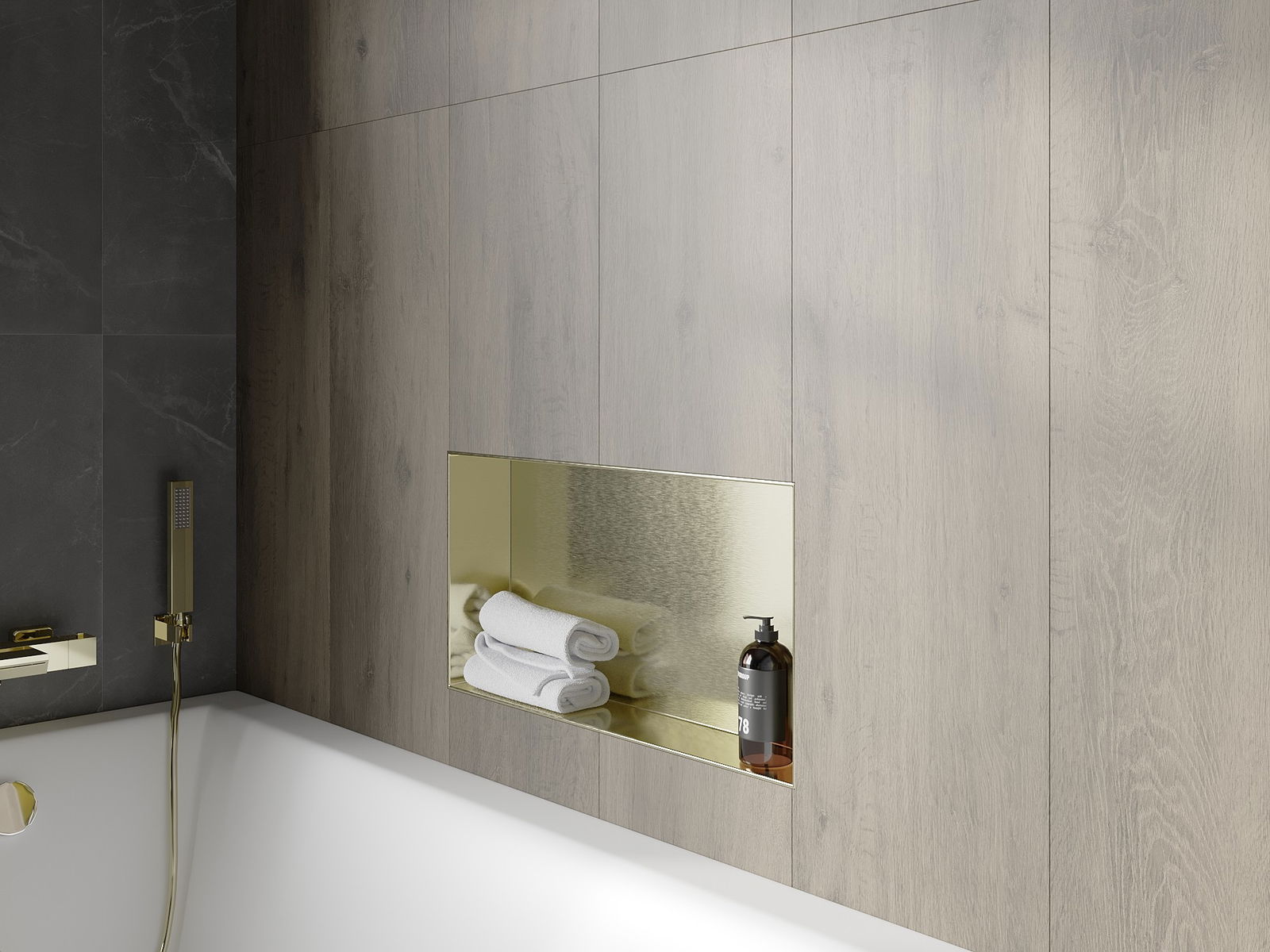 Mexen X-Wall-NR nišinė lentyna be flanšo 60 x 30 cm, šlifuoto aukso - 1951603010