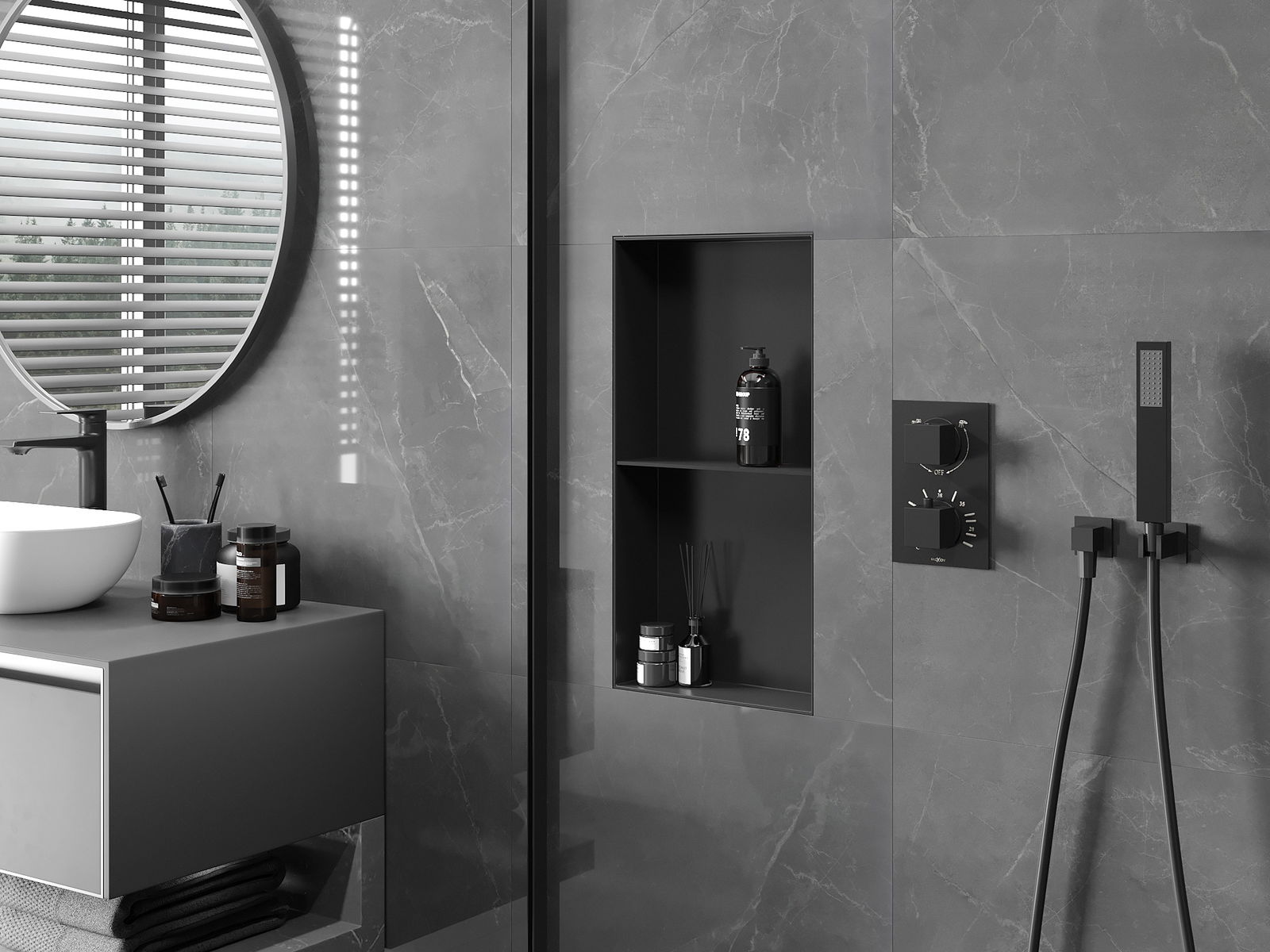 Mexen X-Wall-NR nišinė lentyna be apvado su lentynėle 60 x 30 cm, juoda - 1971603010S