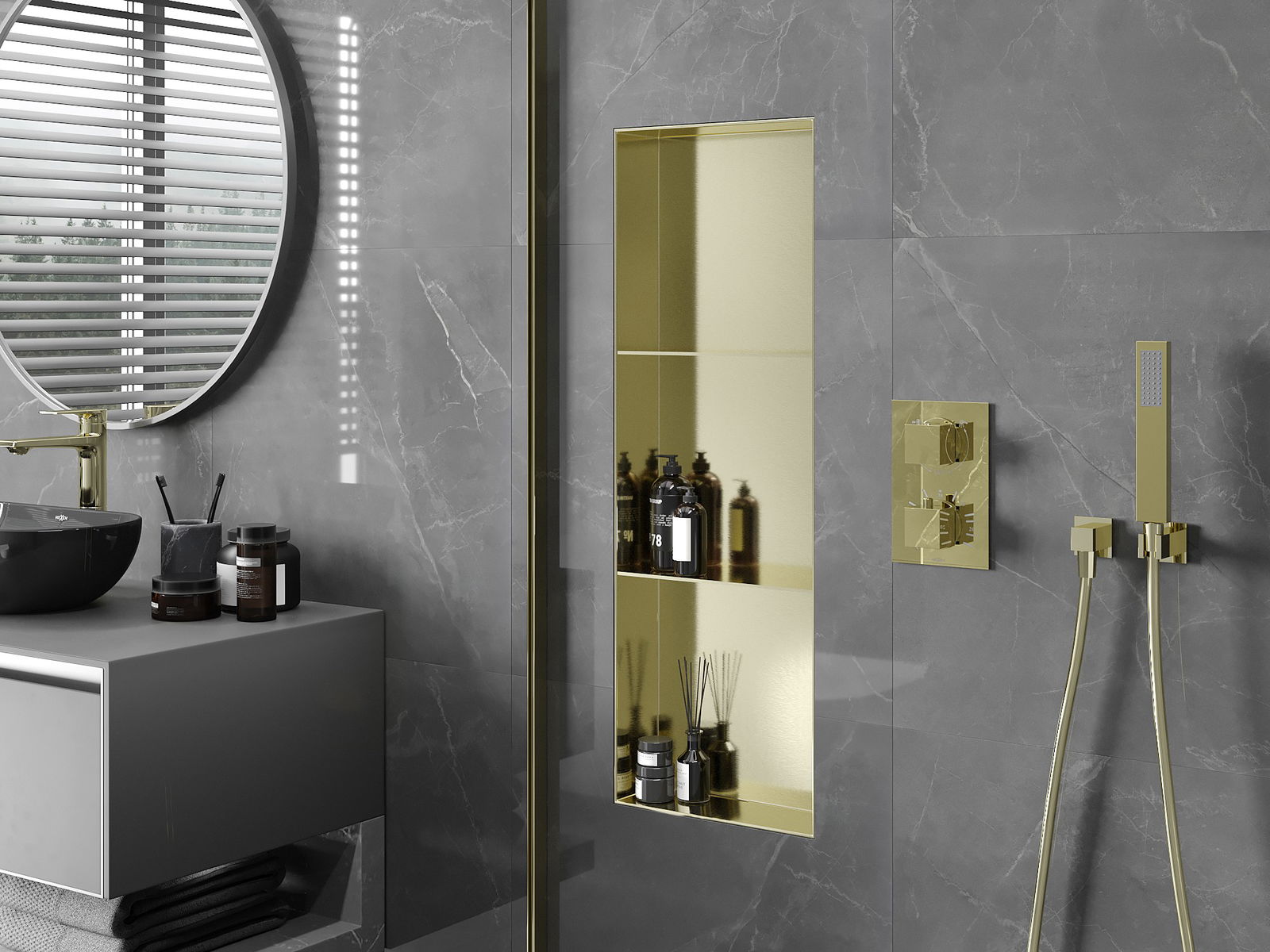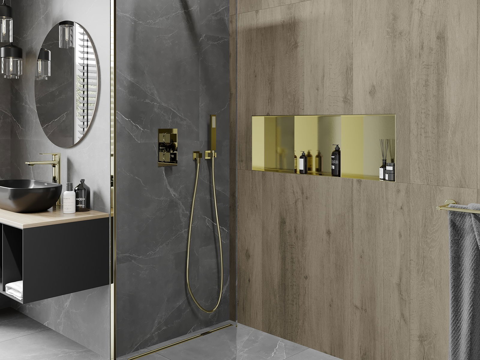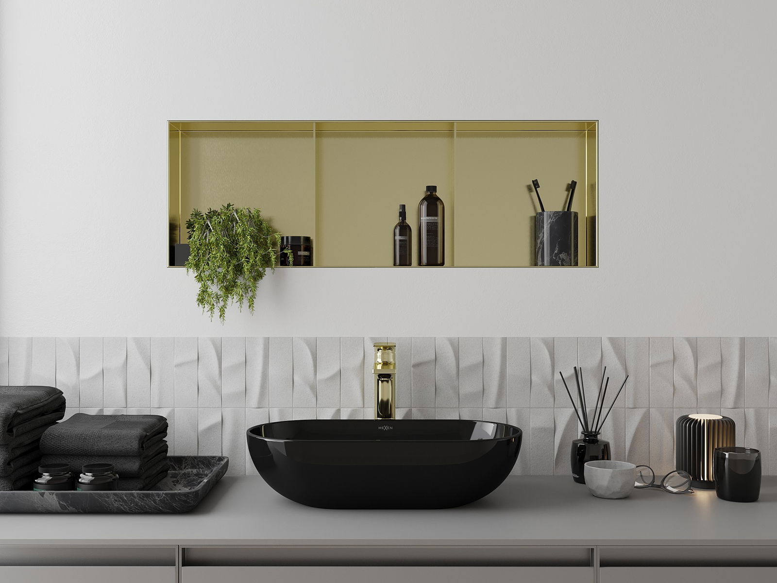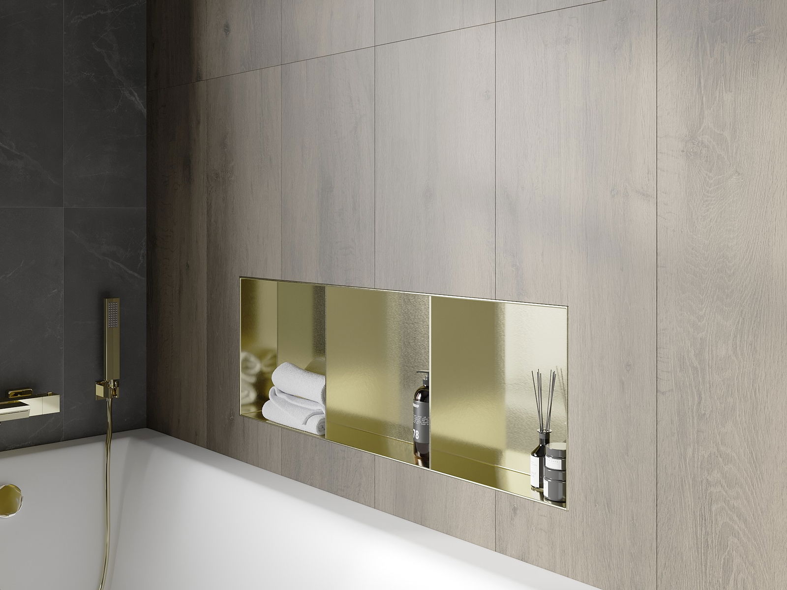 Mexen X-Wall-NR lentynėlė nišinė be briaunos su lentynėle 90 x 30 cm, auksinė šlifuota - 1951903010S