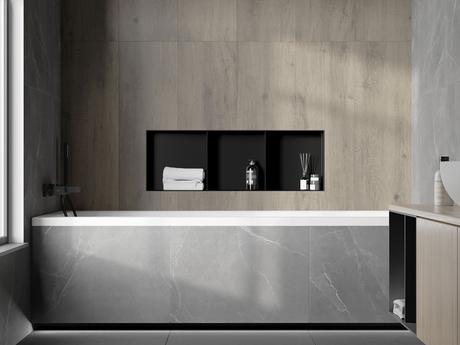 Įdiegimo į sieną arba specialiai paruoštoje pastate galimybė. Tai ypač modernus ir funkcinis sprendimas, leidžiantis sutaupyti vietos ir suderinti produktą su interjero estetika ir sukurti nuoseklią kompoziciją.