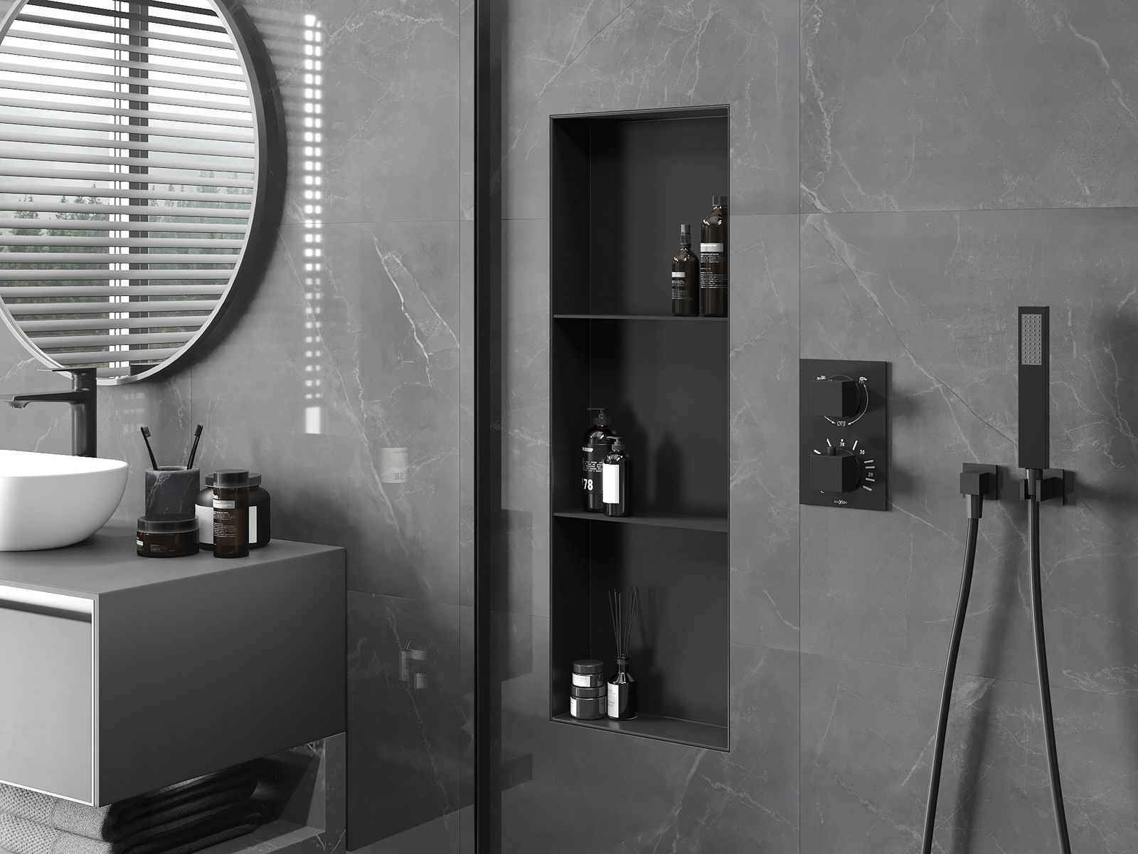 Mexen X-Wall-NR nišinė lentyna be apvado su lentyna 90 x 30 cm, juoda - 1971903010S