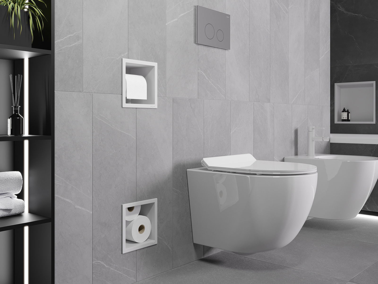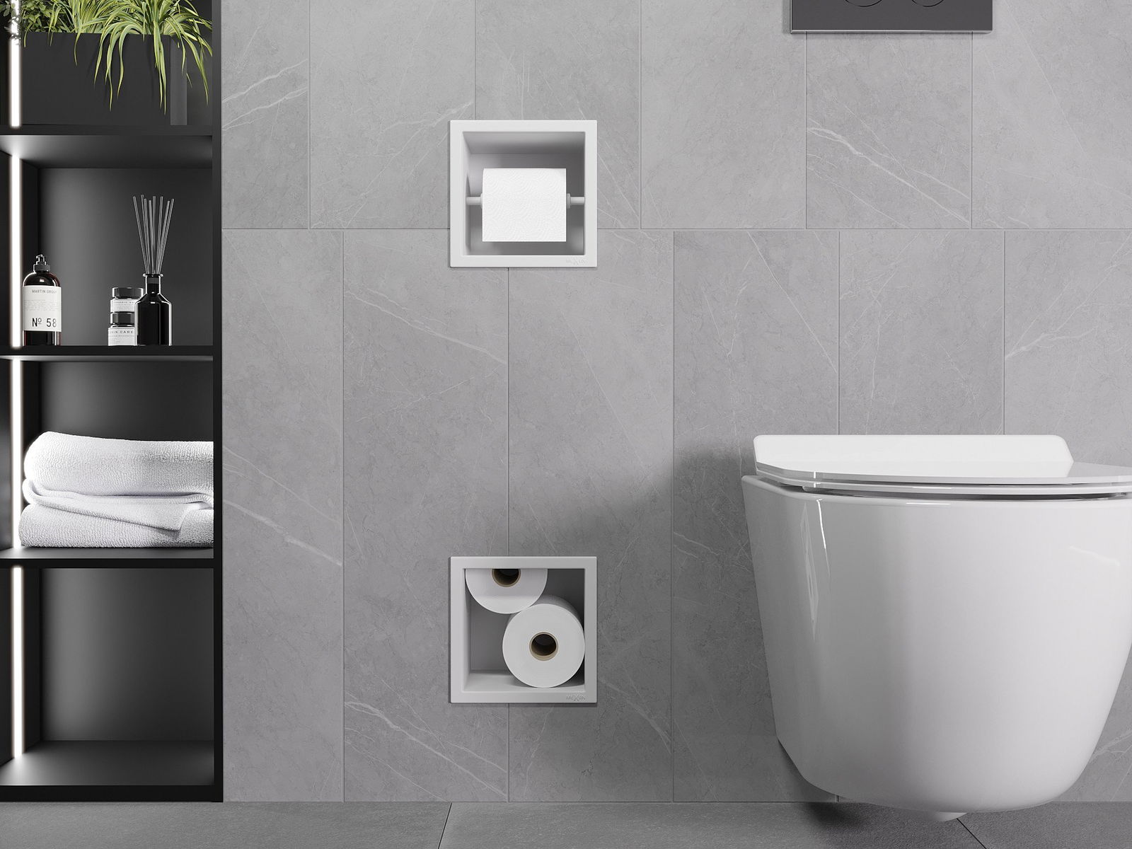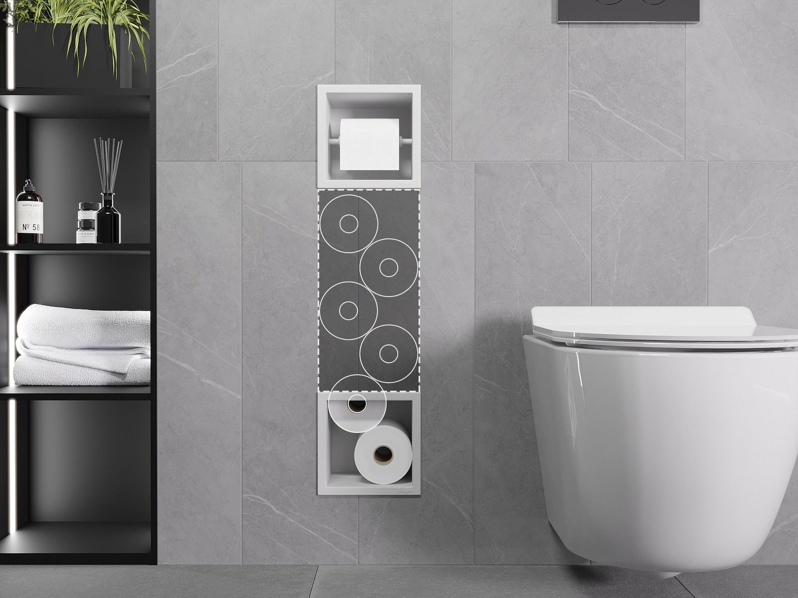 „X-Wall“ yra praktinis tualetinio popieriaus laikiklis su sandėliu, pastatytu į sieną. Naujasis ritinys visada yra po ranka, o tualetinio popieriaus laikymui skirta vieta gali būti naudojama kitaip.