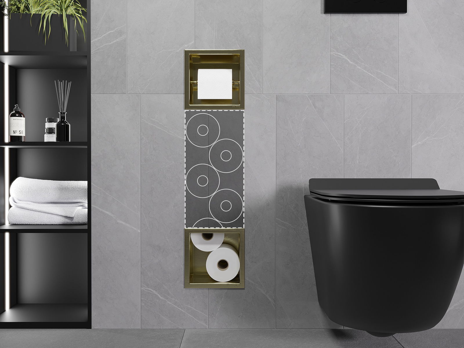 X-wall yra praktiškas tualetinio popieriaus laikiklis su sienoje integruotu laikikliu. Naujas ritinys visada yra ranka pasiekiamas, o vietą, anksčiau skirtą tualetinio popieriaus laikymui, galime panaudoti kitaip.