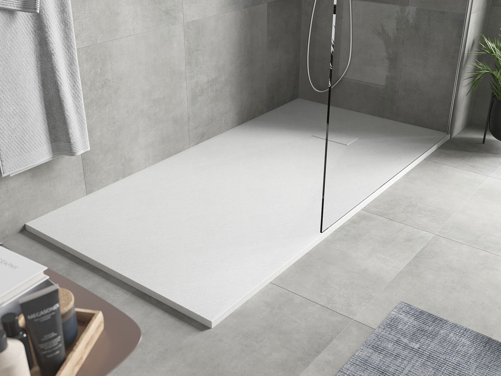 Dušo dėklo paviršius primena akmenį su jo struktūra. Tai unikalus natūralios išvaizdos derinys su šiuolaikišku interjero išdėstymu. Tai prideda charakterio, pabrėžia vonios dekoro estetiką ir eleganciją bei daro įspūdį savo forma.