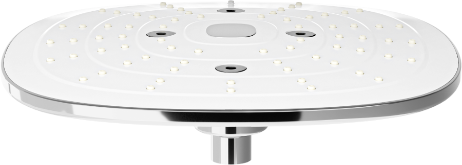 Lietaus dušo galvutė turi guminius purkštukus, kurie neleidžia kauptis kalkėms