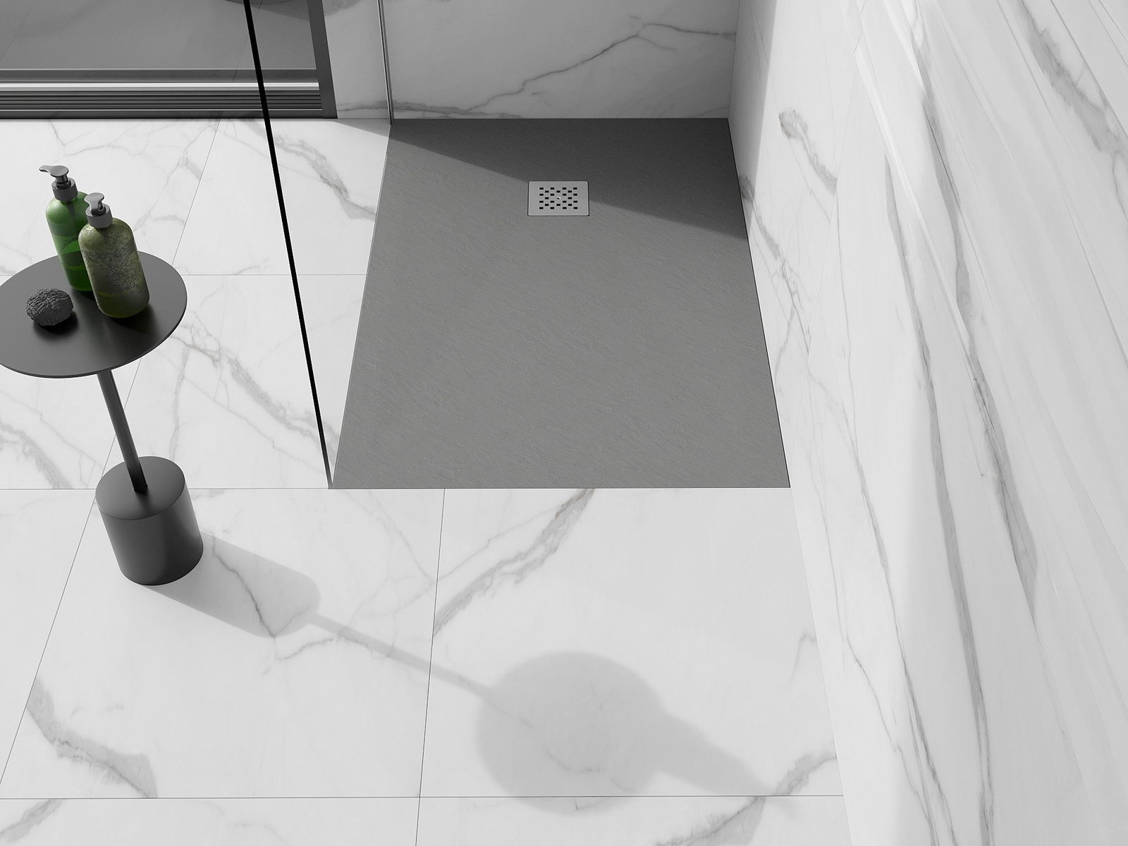 Dušo dėklo paviršius primena akmenį su jo struktūra. Tai unikalus natūralios išvaizdos derinys su šiuolaikišku interjero išdėstymu. Tai prideda charakterio, pabrėžia vonios dekoro estetiką ir eleganciją bei daro įspūdį savo forma.