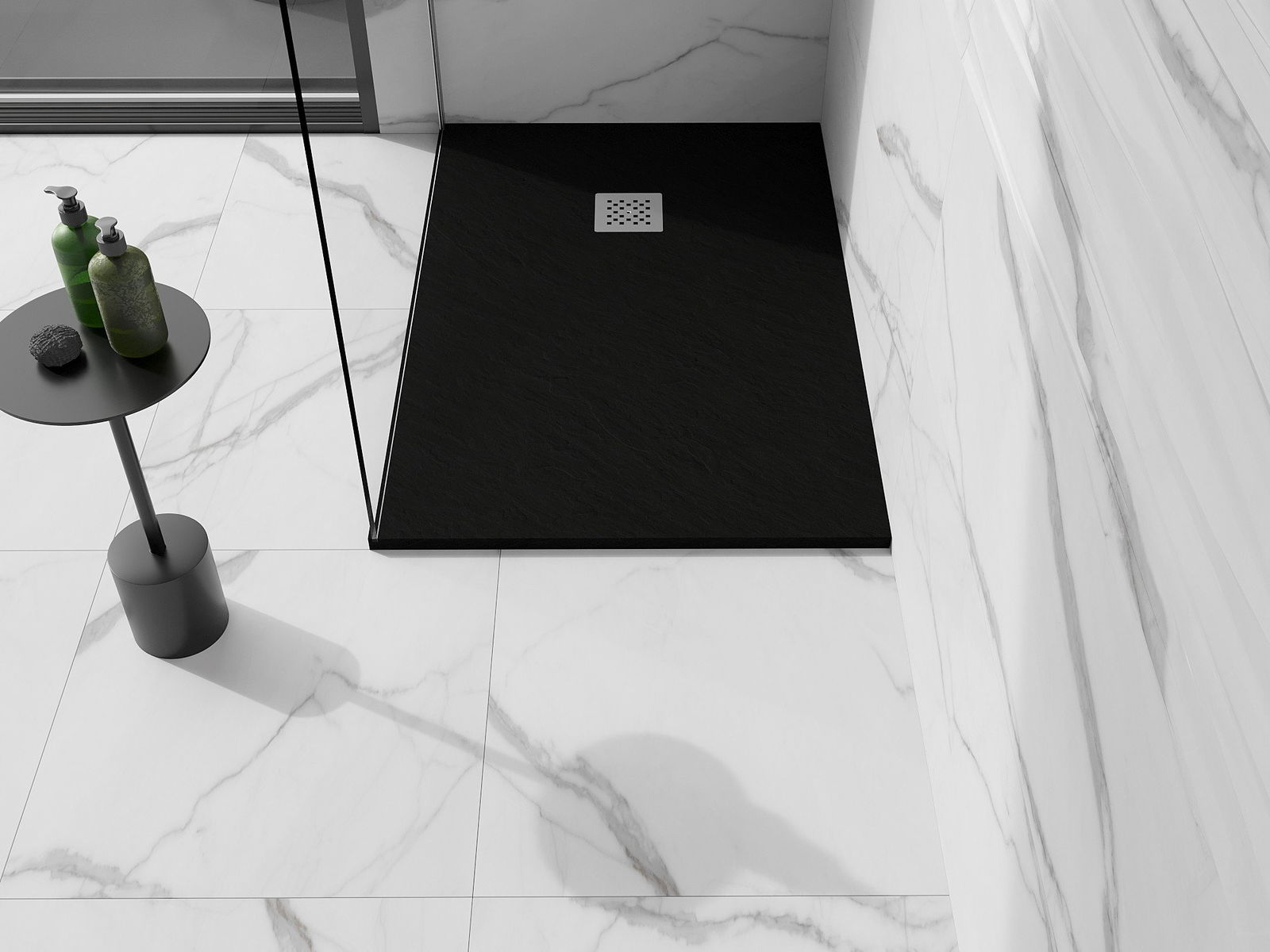 Mexen Stone+ stačiakampė 130 x 80 cm kompozitinė dušo dėžė, juoda - 44708013