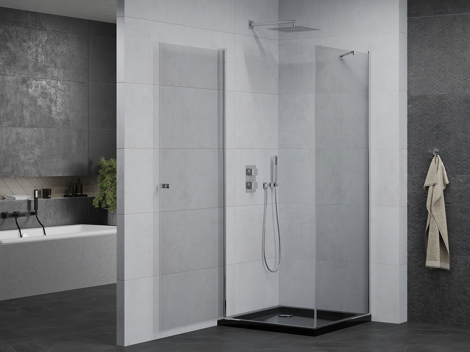 Dėl universalaus tvirtinimo sistemos, dušo durys gali būti sumontuotos dešinėje arba kairėje pusėje, atsižvelgiant į poreikius. Tai leidžia lengvai suprojektuoti dušą, pritaikytą vonios kambario erdvei.
