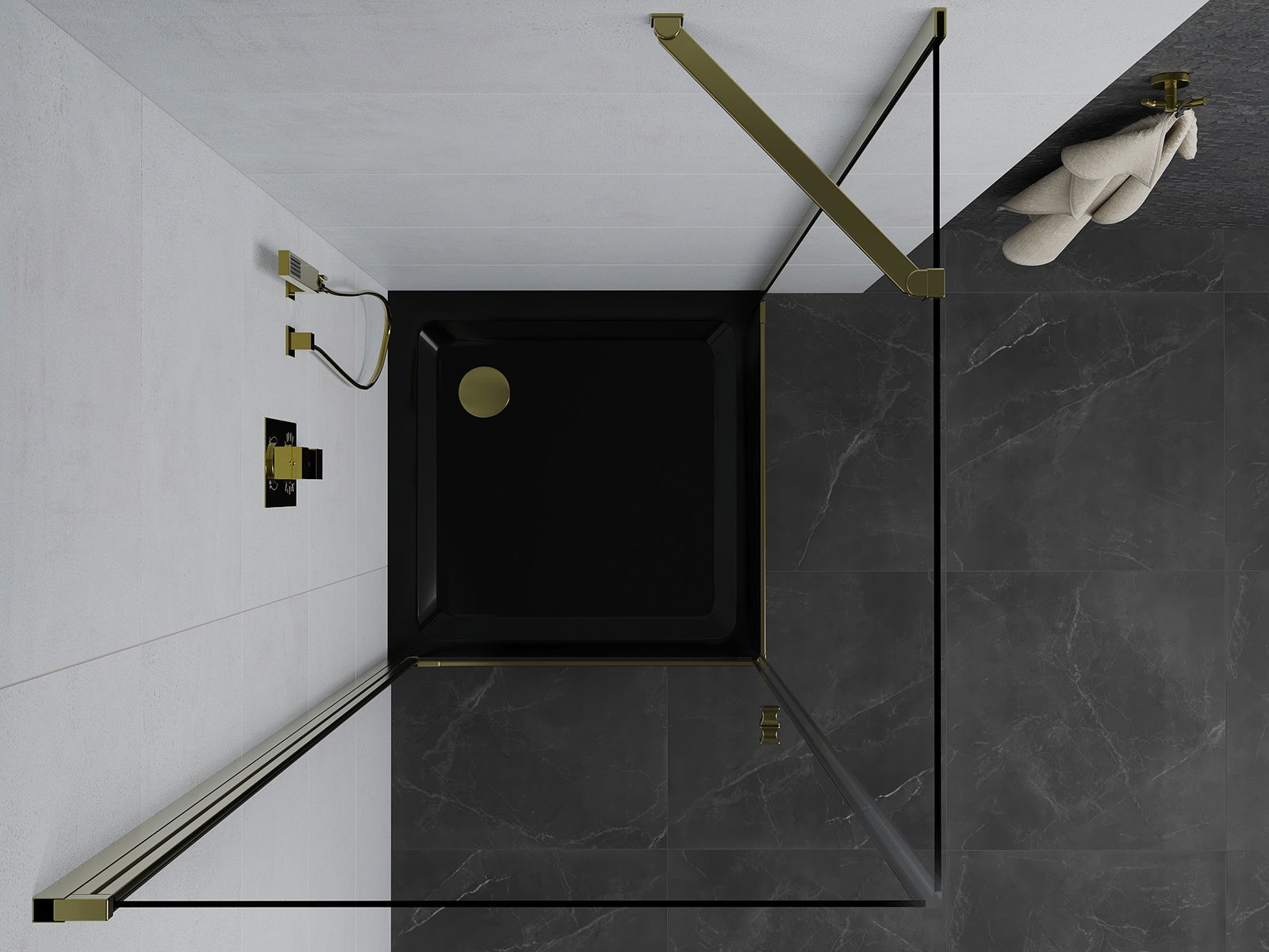 Mexen Pretoria atveriamas dušo kabina 80 x 80 cm, skaidrus, auksinė + Flat padėklas, juodas - 852-080-080-50-00-4070G