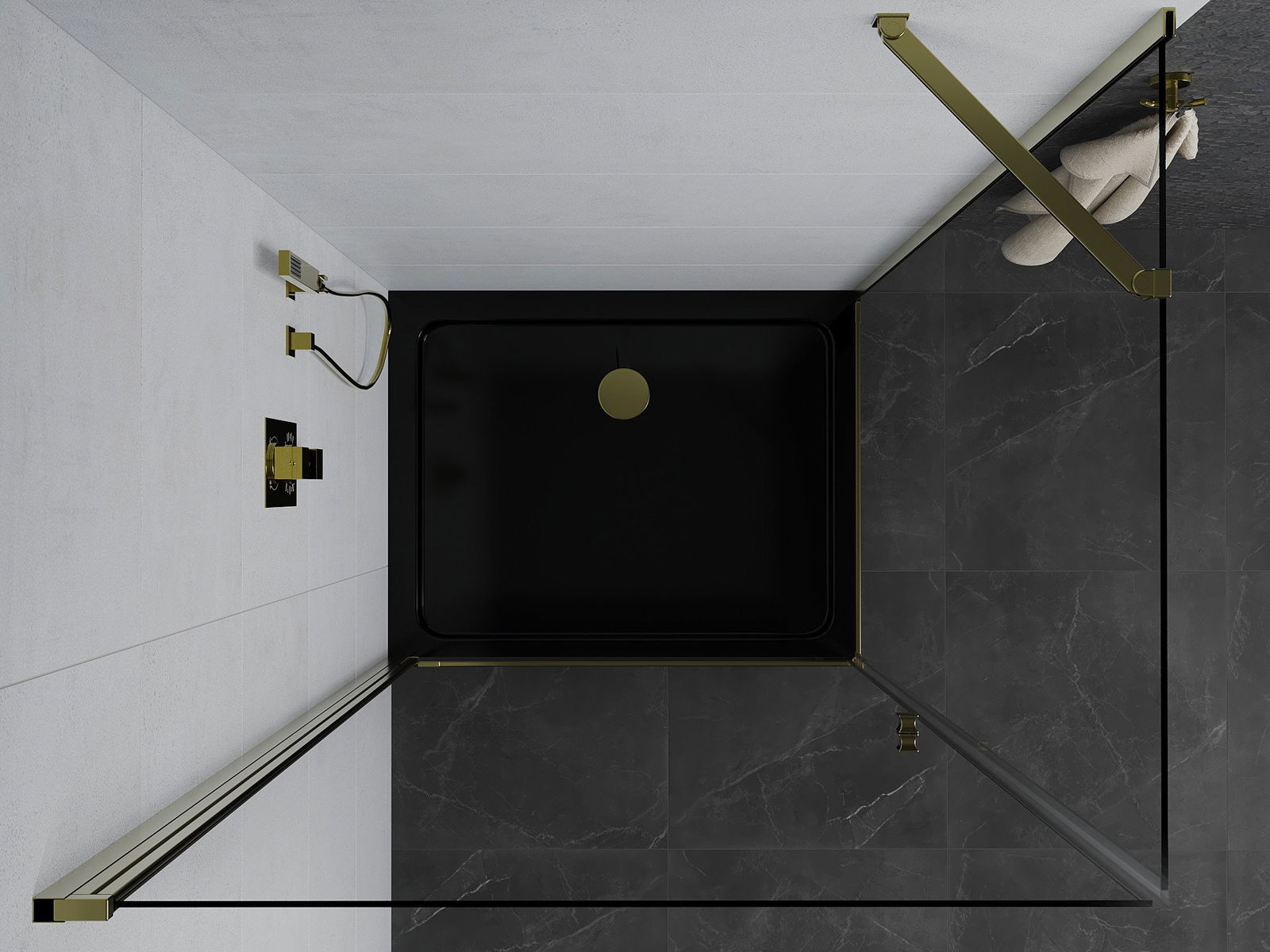Mexen Pretoria dušo kabina su varstomomis durimis 80 x 100 cm, skaidri, auksinė + Flat padėklas, juodas - 852-080-100-50-00-407?