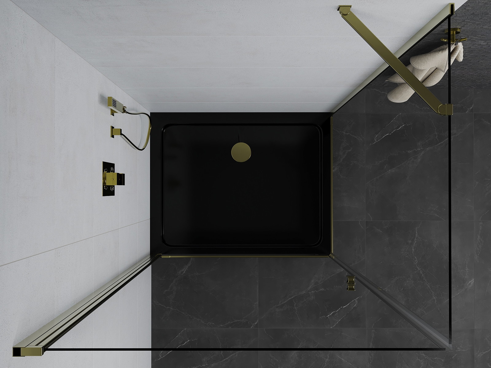 Mexen Pretoria 35dušo kabina su varstomomis durimis 100 x 90 cm, skaidri, auksinė + Flat padėklas, juodas