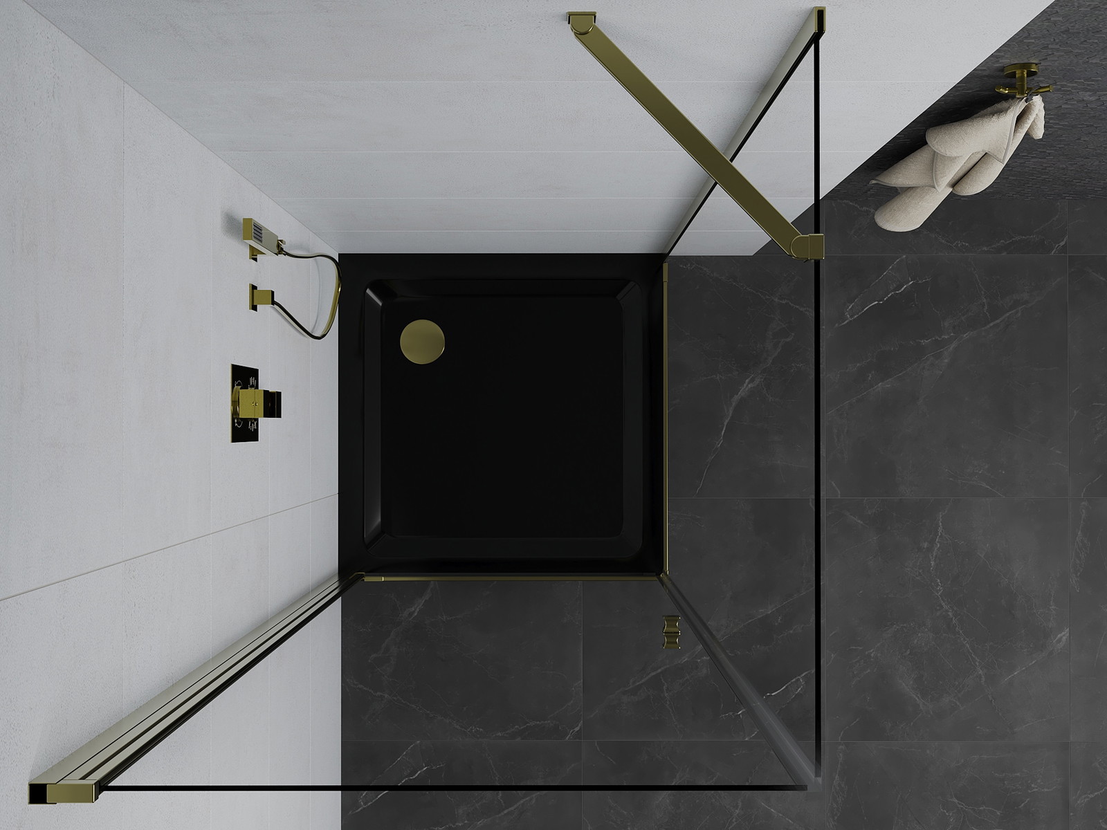 Mexen Pretoria varstoma dušo kabina 100 x 100 cm, skaidri, auksinė + Flat dušo padėklas, juodas - 852-100-100-50-00-4070G