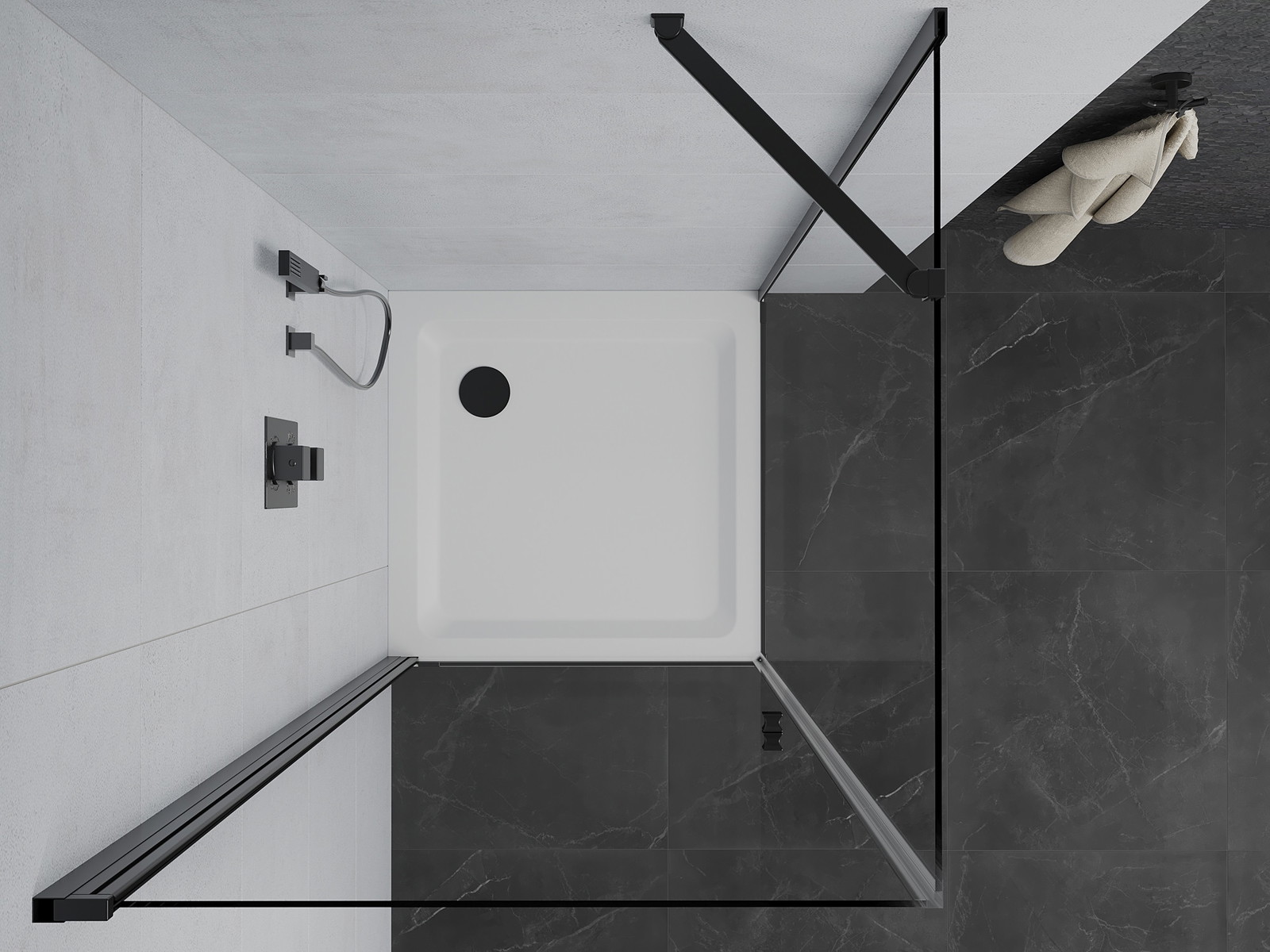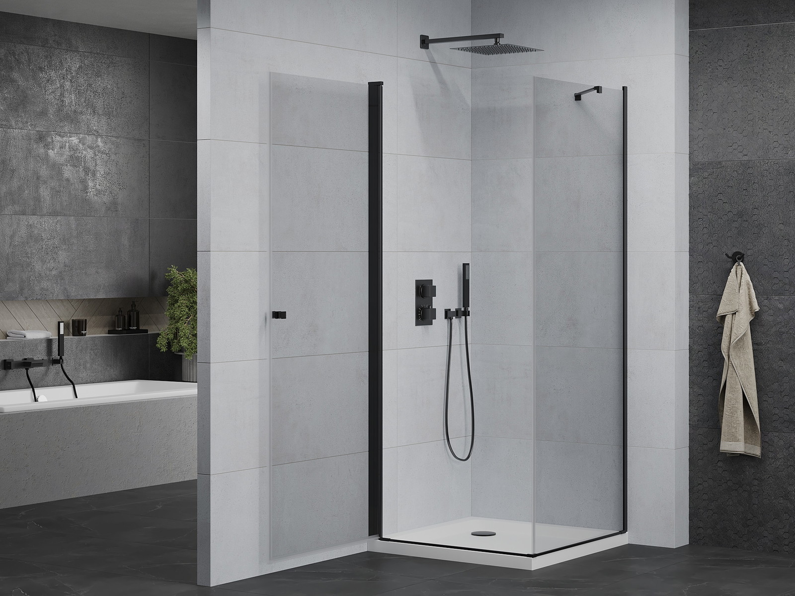 Mexen Pretoria dušo kabina su varstomomis durimis 70 x 70 cm, permatoma, juoda + Flat padėklas - 852-070-070-70-00-4010B