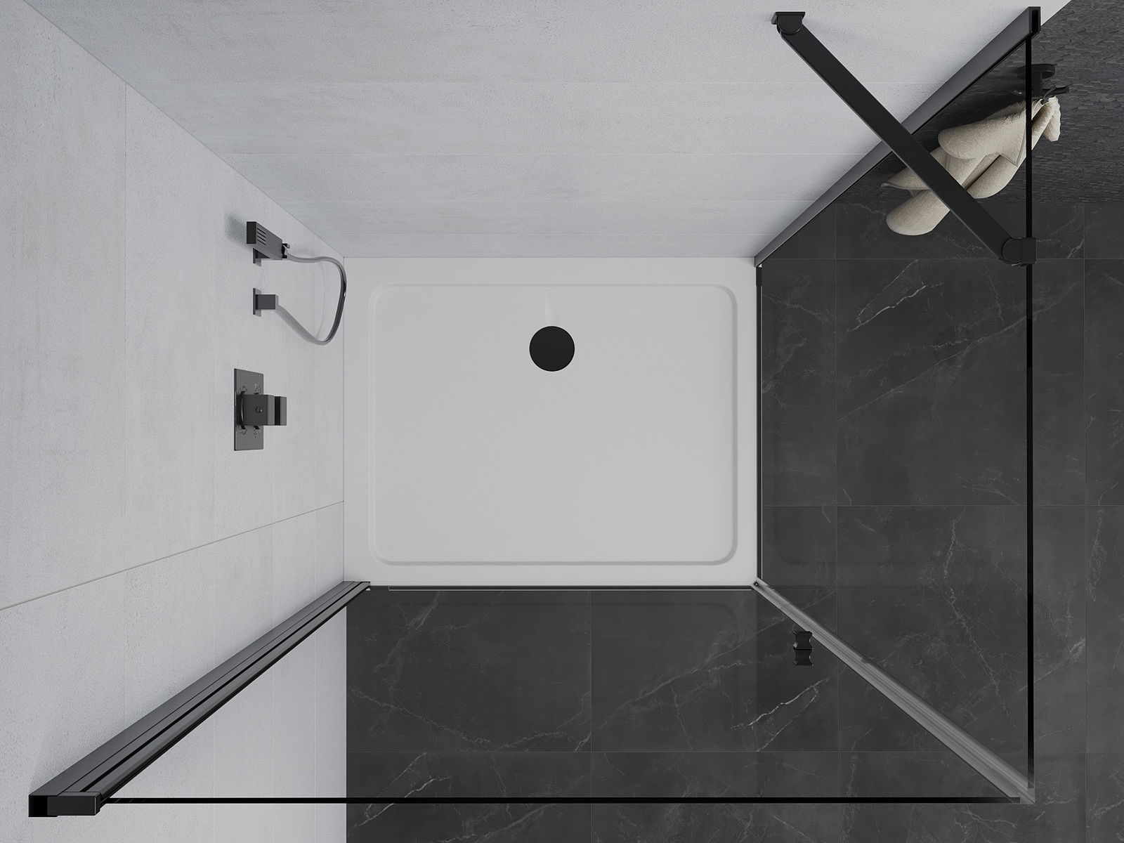 Mexen Pretoria dušo kabina varstoma 80 x 90 cm, permatoma, juoda + padėklas Flat - 852-080-090-70-00-4010B