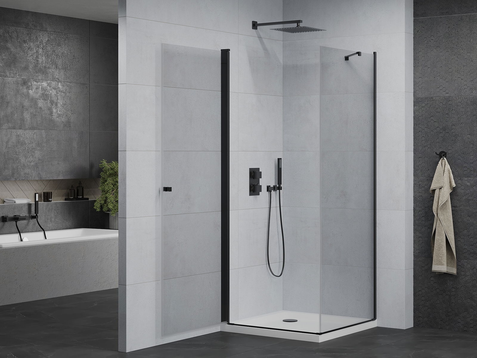 Mexen Rio kvardratinė dušo kabina 90 x 90 cm, permatoma, juoda - 860-090-090-70-00