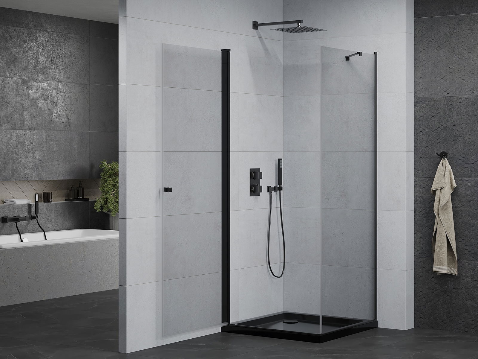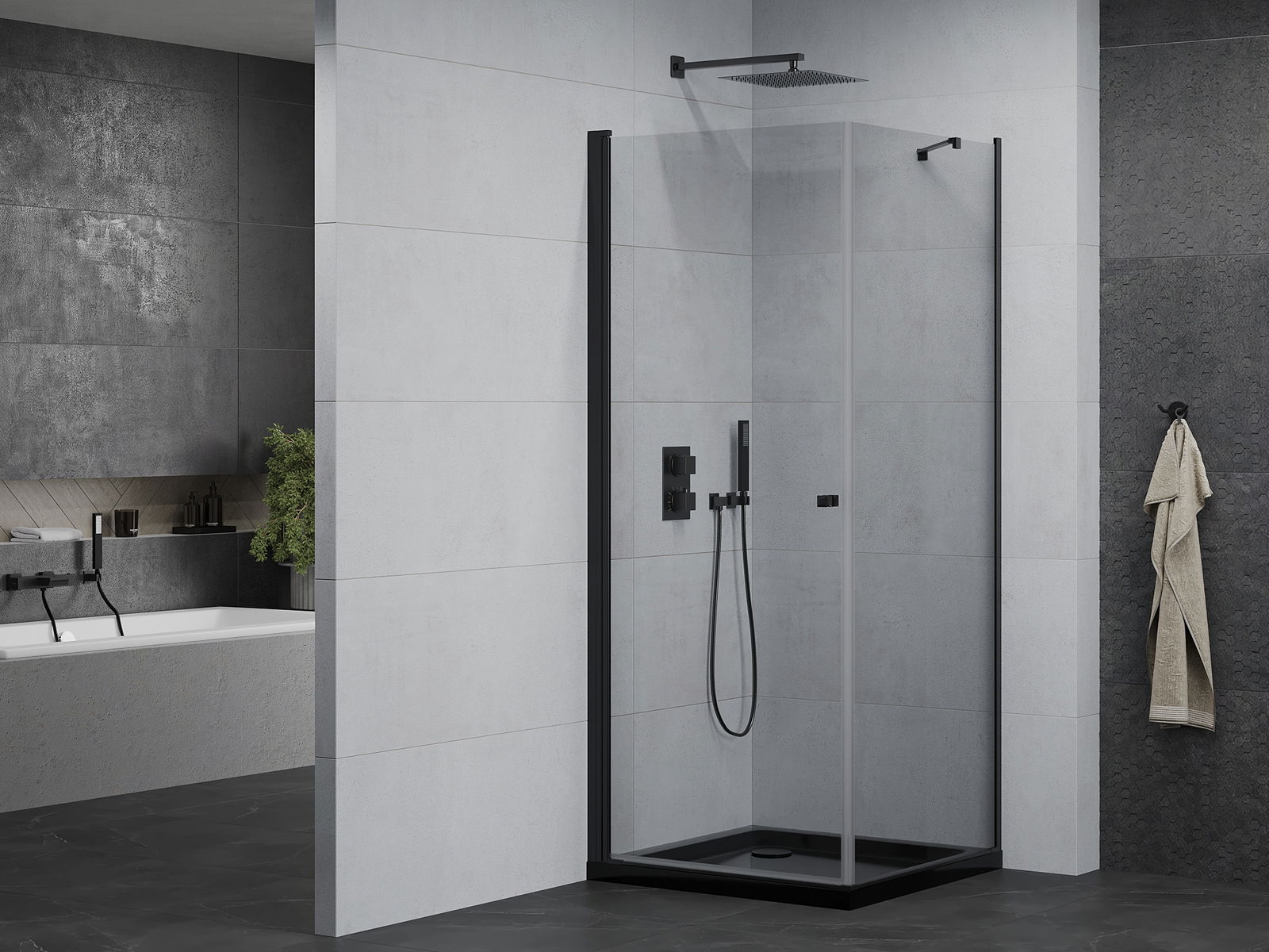 Mexen Pretoria Atveriama dušo kabina 80 x 80 cm, permatoma, juoda + Flat dušo padėklas, juodas - 852-080-080-70-00-4070B
