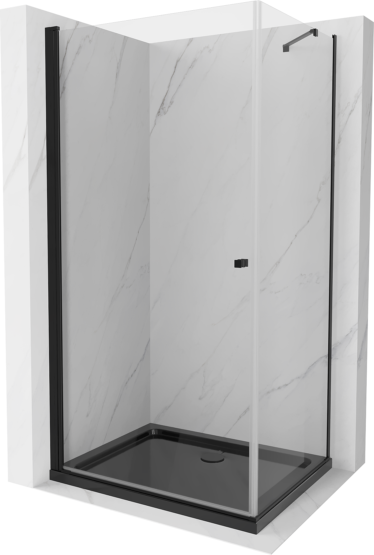 Mexen Pretoria dušo kabina atidaroma 90 x 80 cm, permatoma, juoda + plokščias dušo padėklas, juodas - 852-090-080-70-00-4070B