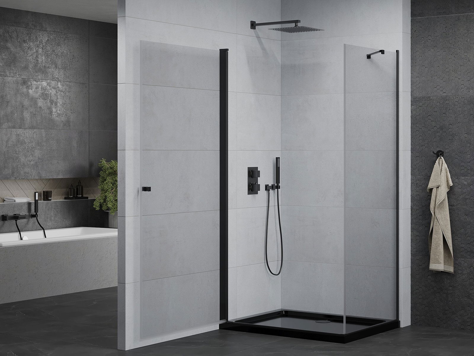 Mexen Rio kvardratinė dušo kabina 90 x 90 cm, permatoma, juoda - 860-090-090-70-00