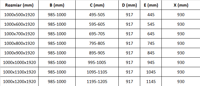 Dušo kabinos, durys ir sienelės yra standartiškai pritaikytos montuoti ant nustatytų matmenų dušo padėklų. Būtent šie matmenys nurodomi gaminio pavadinime arba aprašyme. Tačiau atkreipkite dėmesį, kad faktiniai elementų matmenys gali šiek tiek skirtis nuo vardinių verčių. Planuojant montuoti tiesiai ant grindų, rekomenduojama atidžiai patikrinti išorinius matmenis ir elementų išdėstymą pagal techninį brėžinį.
