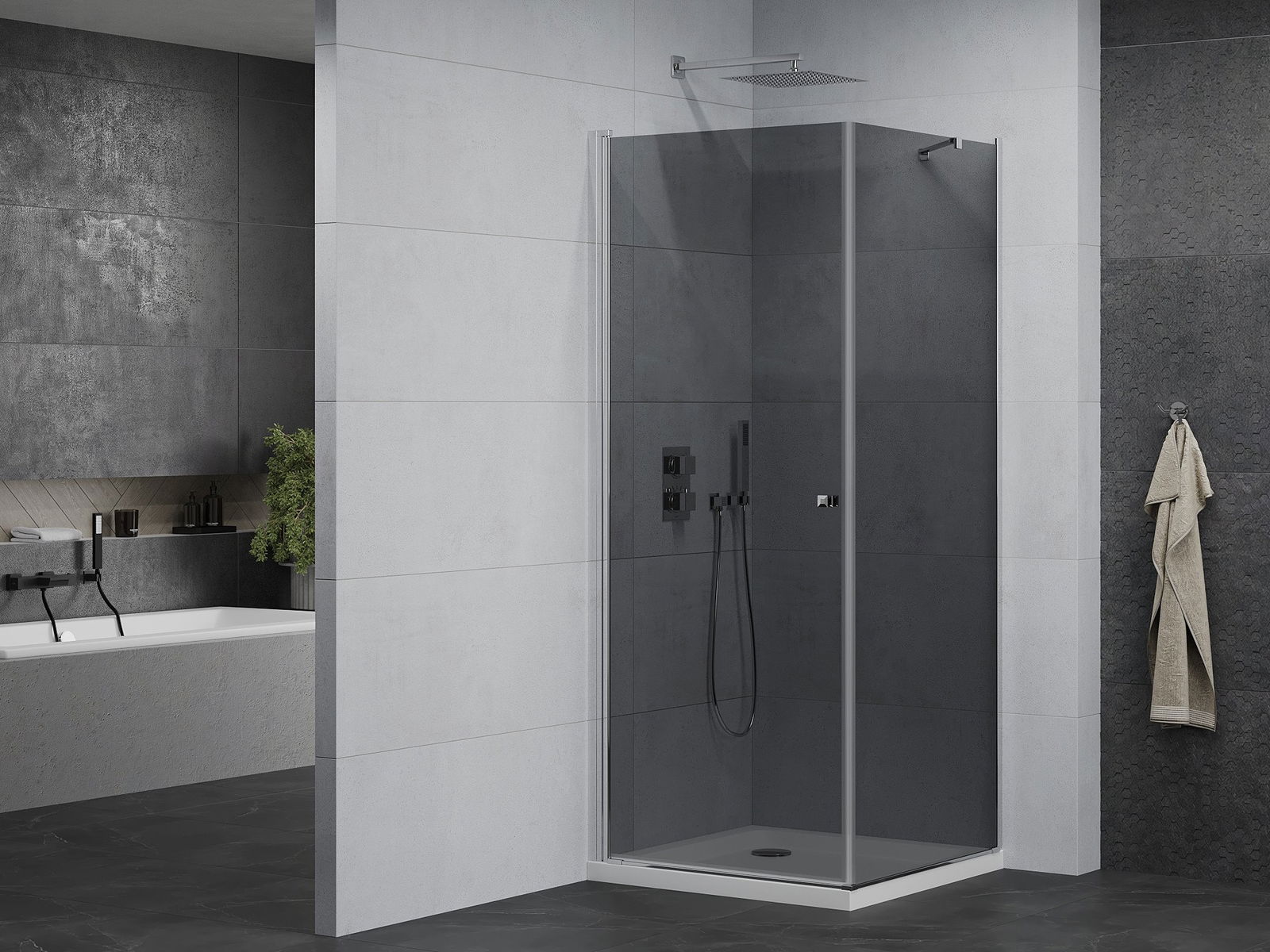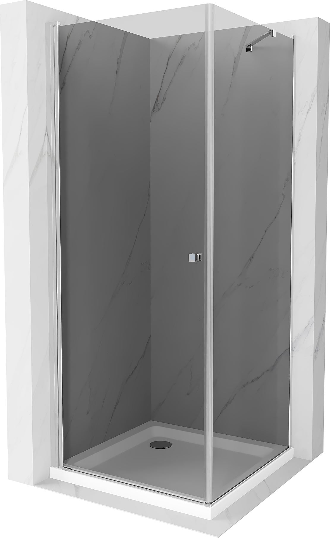 Mexen Pretoria atsiverianti dušo kabina 70 x 70 cm, grafitas, chromas + dušo padėklas Flat - 852-070-070-01-40-4010
