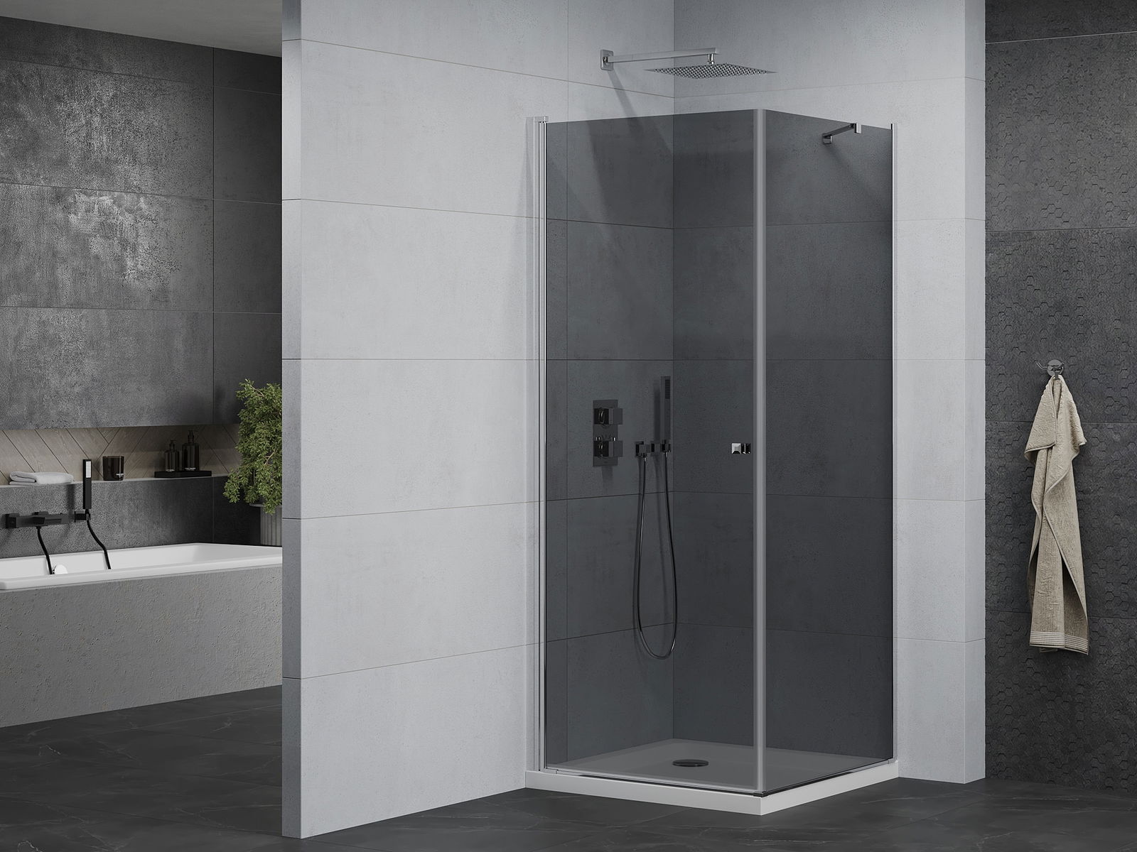 Mexen Pretoria dušo kabina atveriama 90 x 90 cm, grafitas, chromas + plokščia dušo padėklas - 852-090-090-01-40-4010