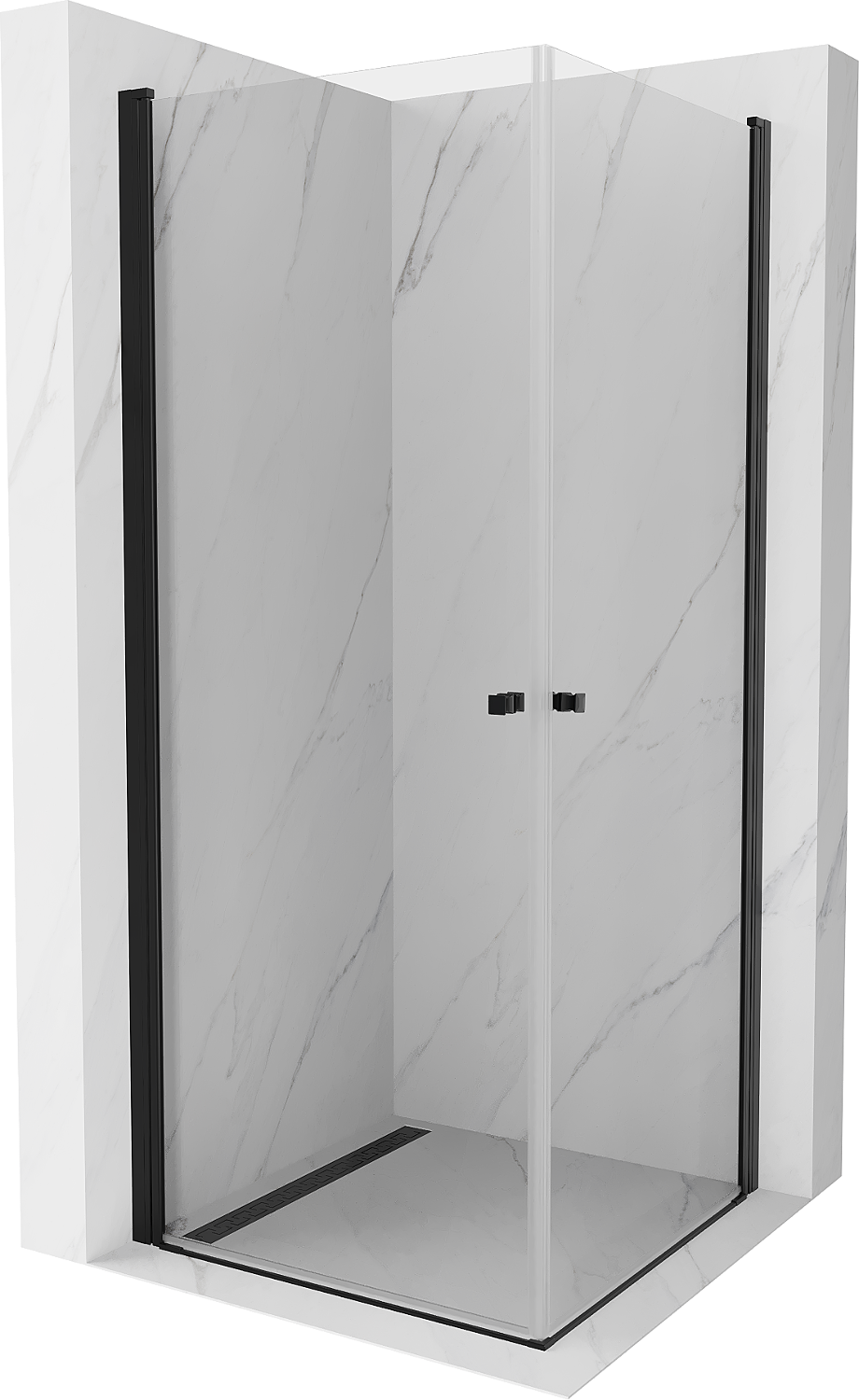 Mexen Pretoria Dviguba dušo kabina su atveriamomis durimis 100 x 100 cm, skaidri, juoda - 852-100-100-70-00-02
