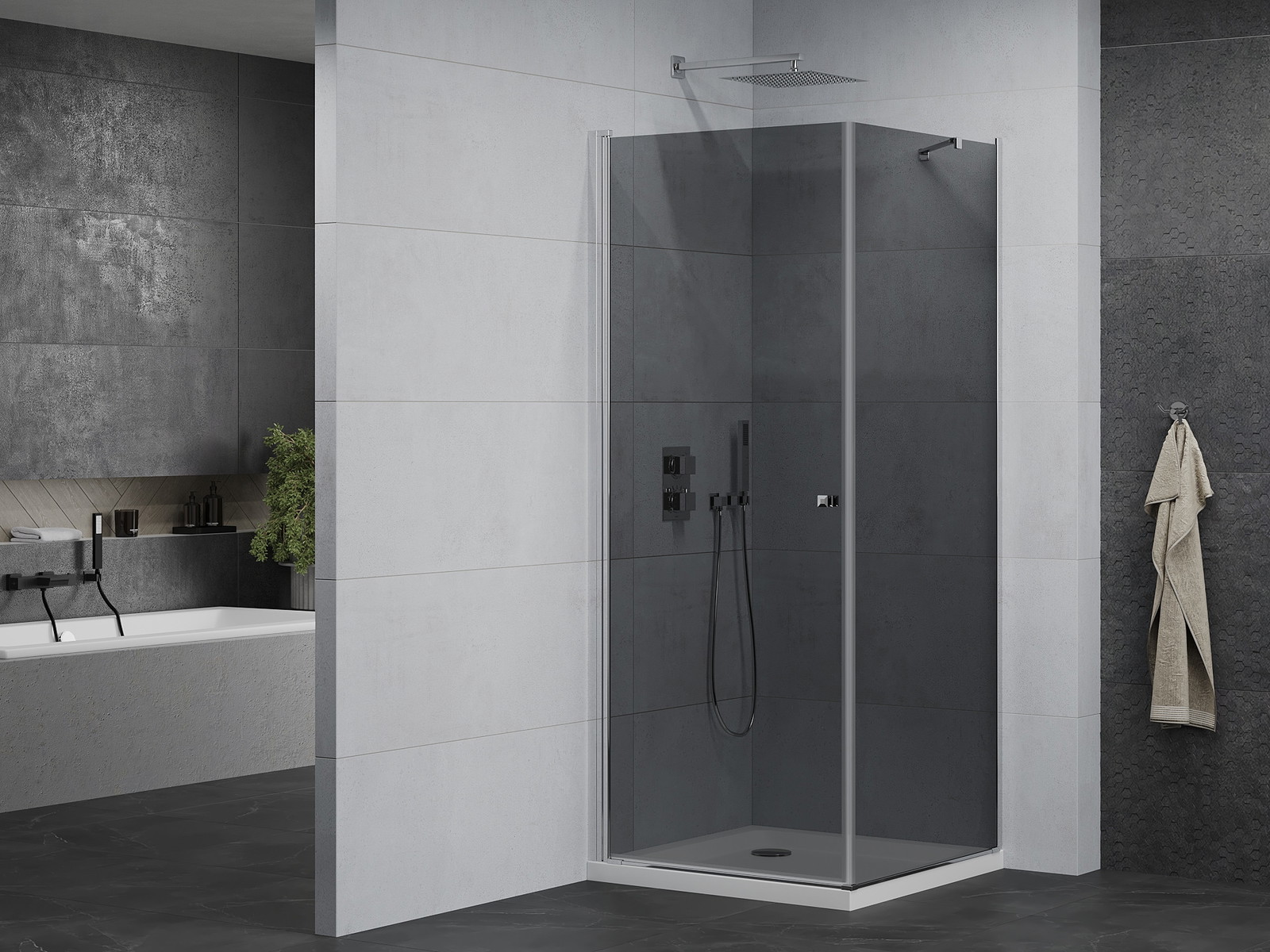 Mexen Pretoria dušo kabina su atveriamomis durimis 100 x 100 cm, grafitas, chromas + Flat dušo padėklas