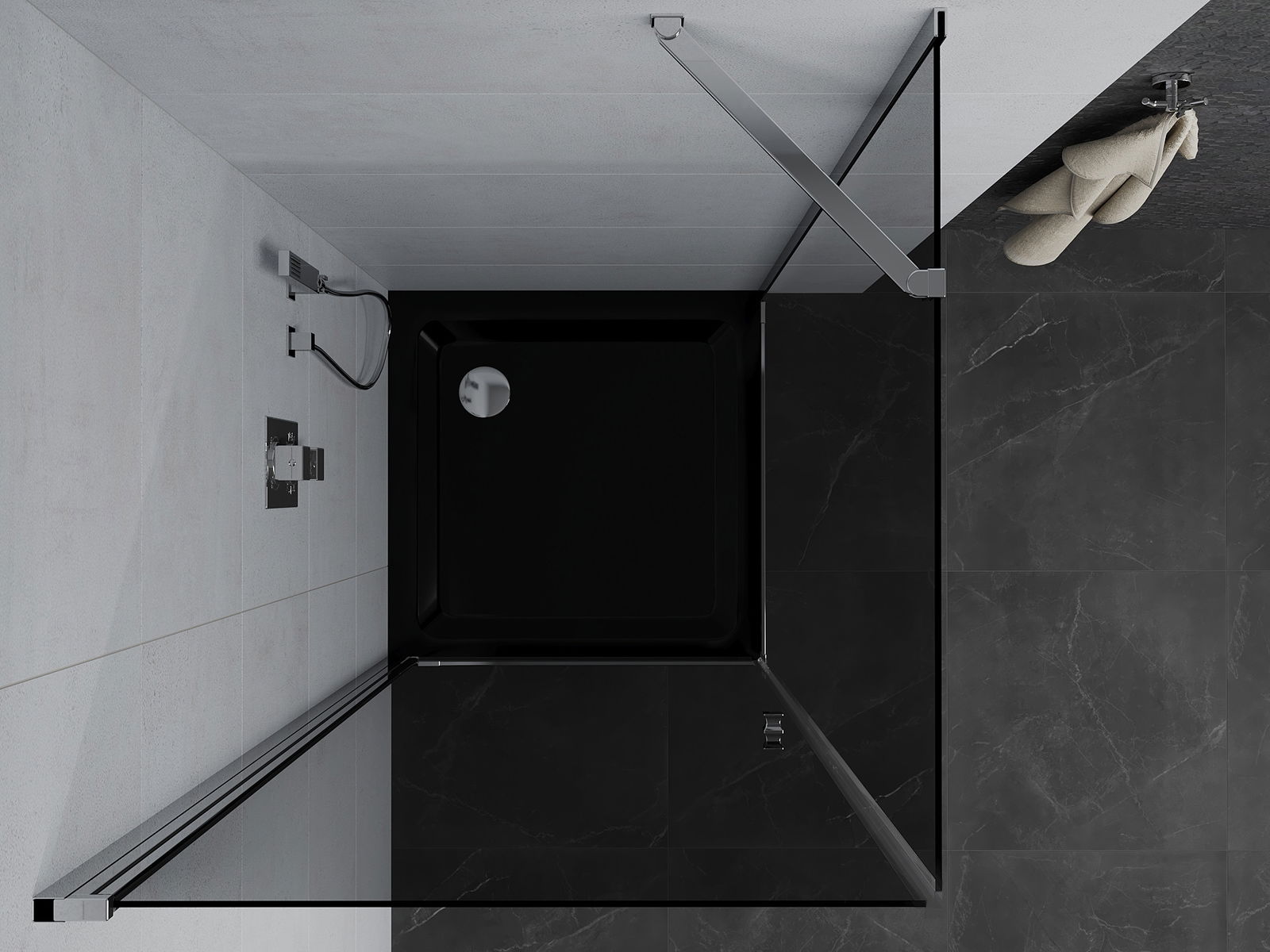 Mexen Pretoria varstoma dušo kabina 100 x 100 cm, grafitas, chromas + plokščia dušo padėklas, juodas