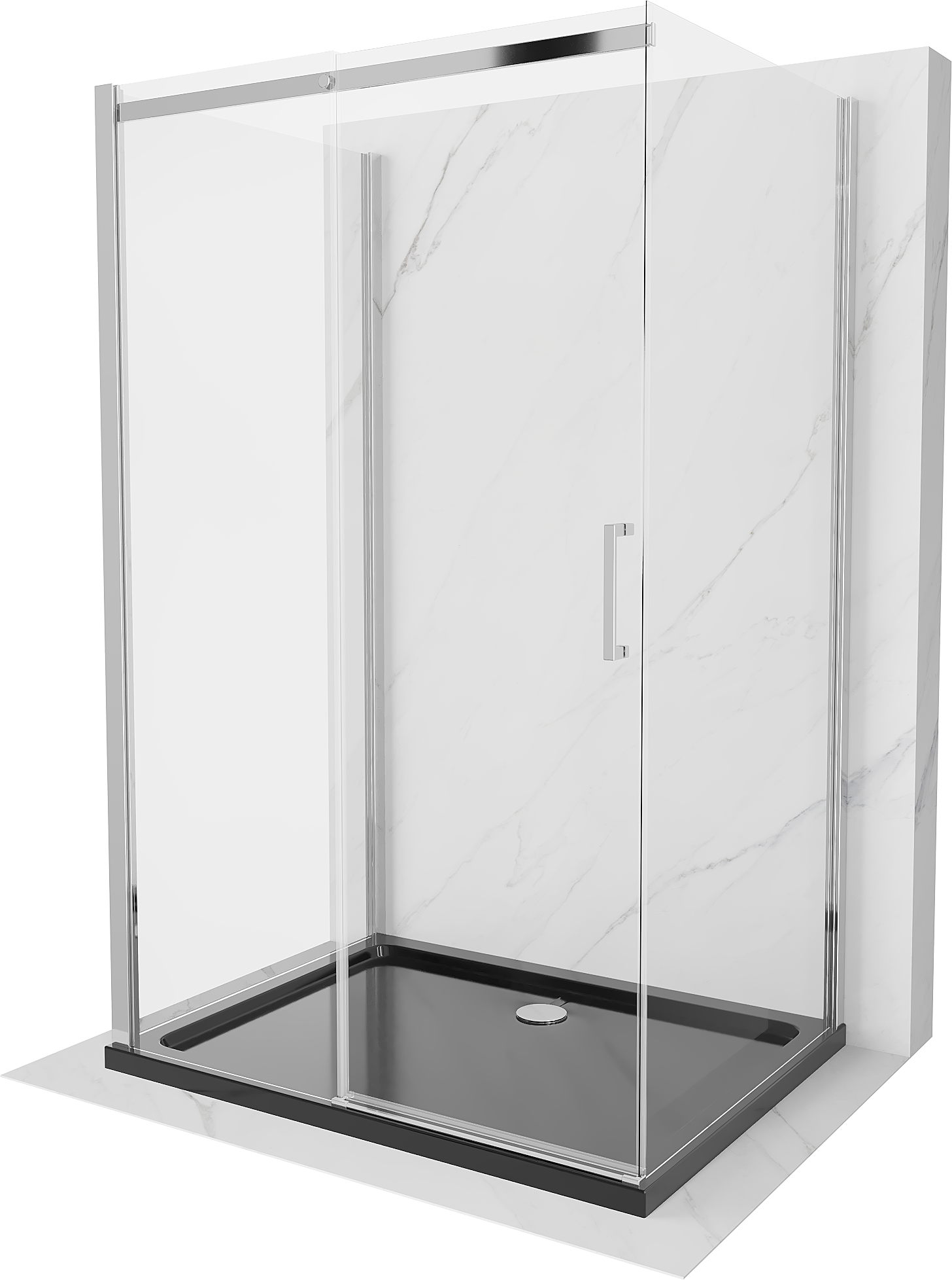 Mexen Omega-3S trijų sienelių dušo kabina, stumdomos, 100x100 cm, skaidri, chromas + plokščiasis padėklas - 825-100-100-01-00-3?