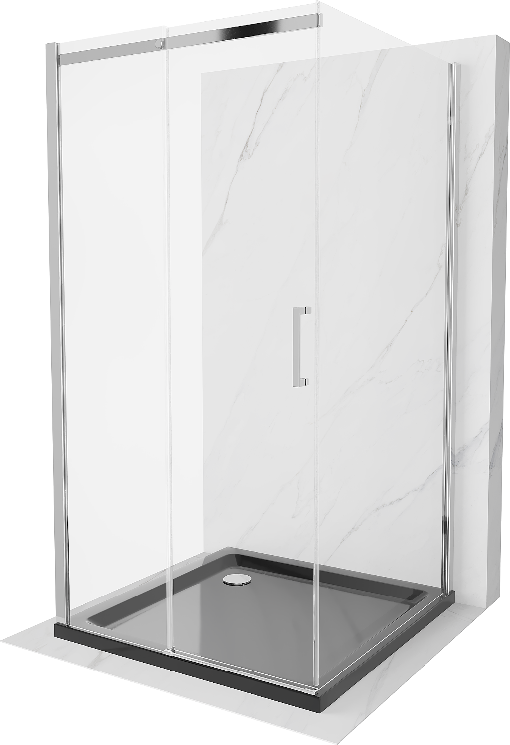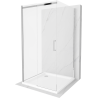 Mexen Omega-3S trijų sienų dušo kabina, stumdomos durys 100x100 cm, skaidri, chromuota + Flat padėklas