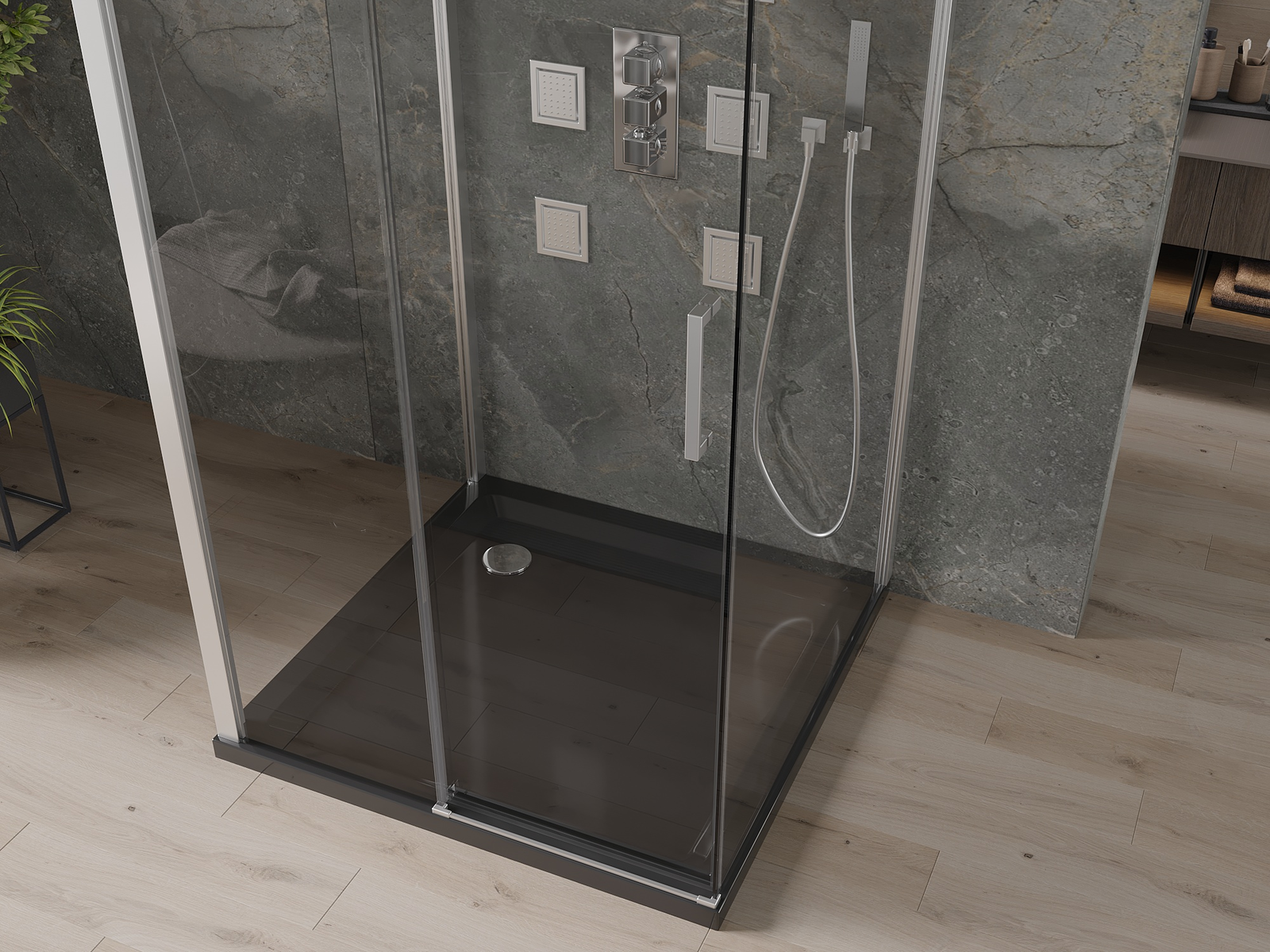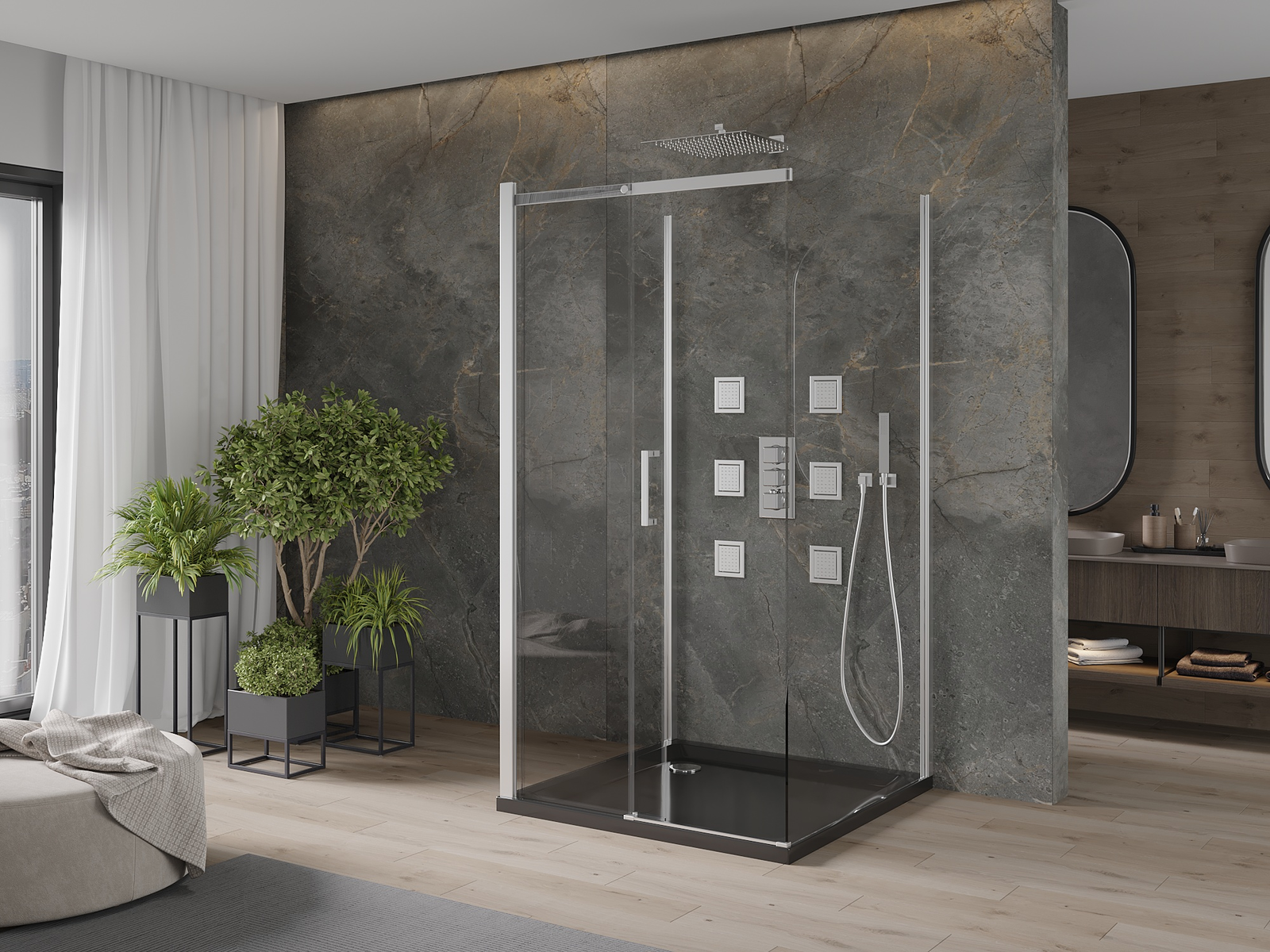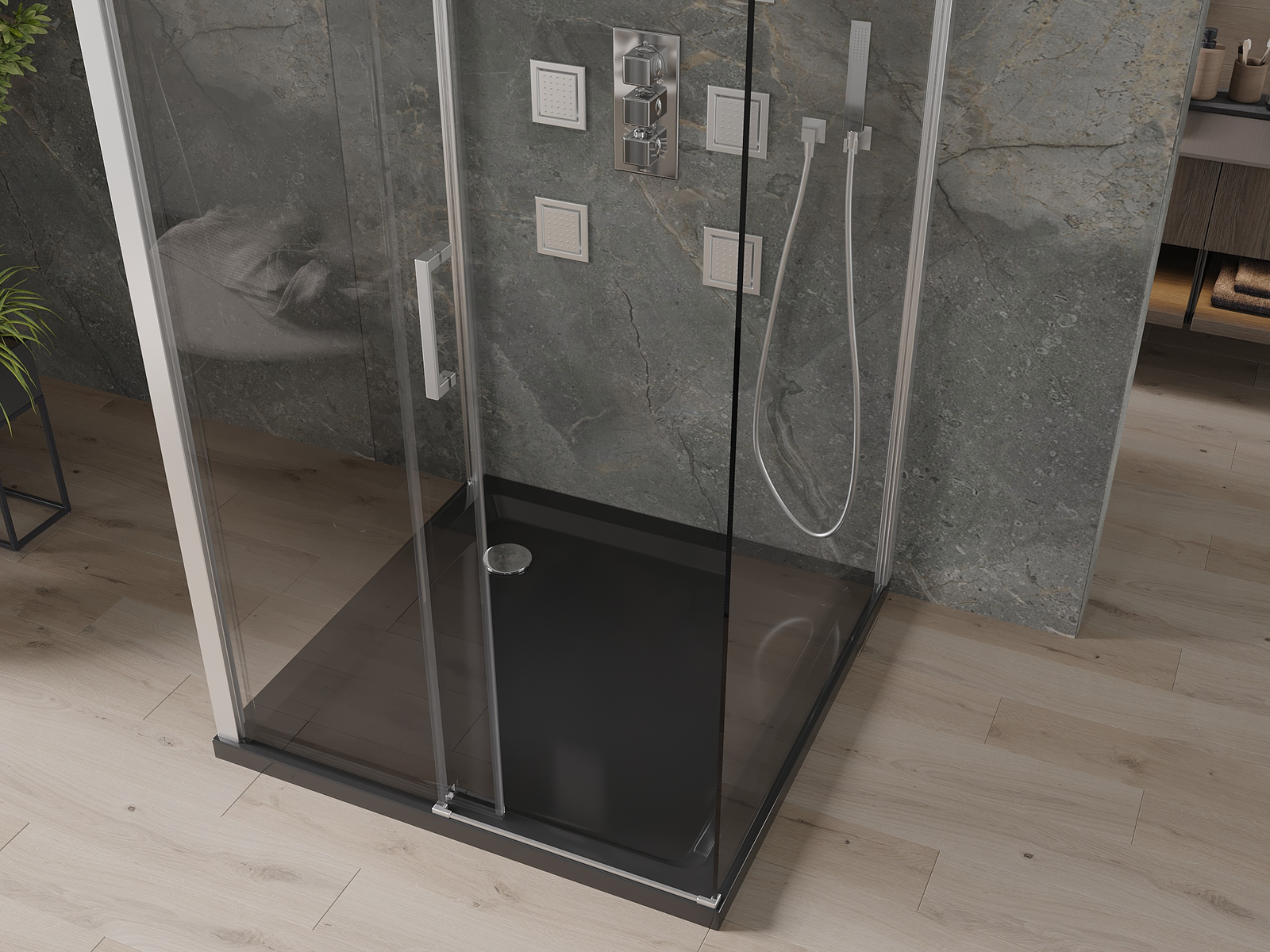 Mexen Omega-3S yra šiuolaikiška, trijų sienų dušo kabina, kurios dydis 100x100 cm, su stumdomomis durimis. Dėl universalaus montavimo ir 8 mm storio, skaidraus, grūdinto stiklo su chromuota apdaila, puikiai prisitaikys prie bet kurios vonios. Turi aliuminio profilį, dangą, palengvinančią valymą, metalinį rankenėlę ir surinkimą vandens nuvedimo tarpiklių komplektą. Aliuminis durų sandarinimo slenkstis ir plotis reguliuojamas, tai įvertins visi naudotojai. Flat padėklas, dydžio 100x100x5 cm, pagamintas iš juodo sanitarinio akrilo, Slim tipo ir su chromuota kiušte apdaila, sudaro visumą, garantuojantį tvirtumą dėl sutvirtinto dugno. Abi komplekto dalys užtikrina aukščiausią kokybę dėka dvigubų ratukų, o įmontuotas sifonas palengvina valymą. Ideali pasiūlymas žmonėms, vertinantiems funkcionalumą ir estetiką.