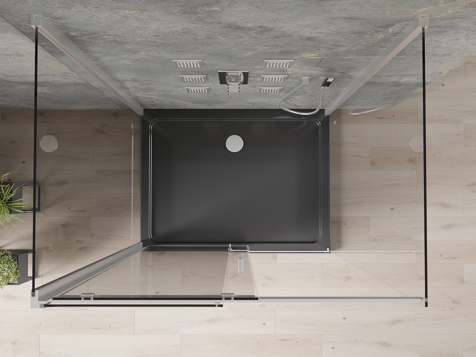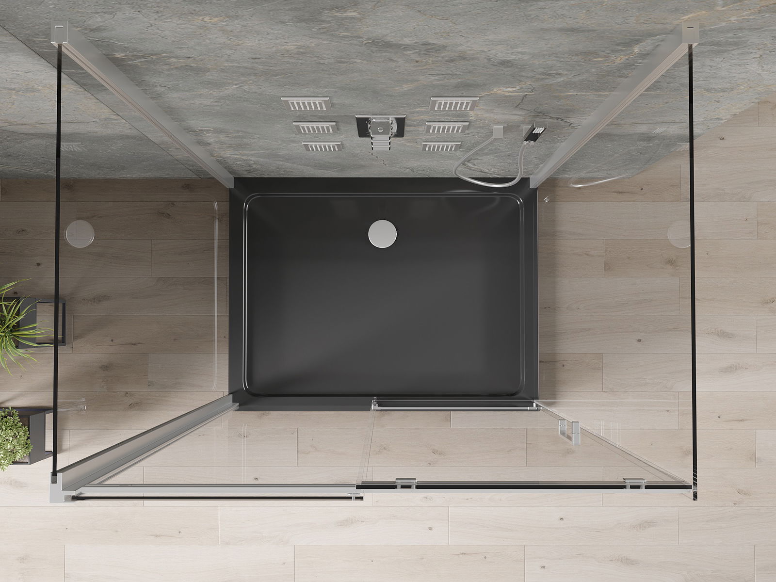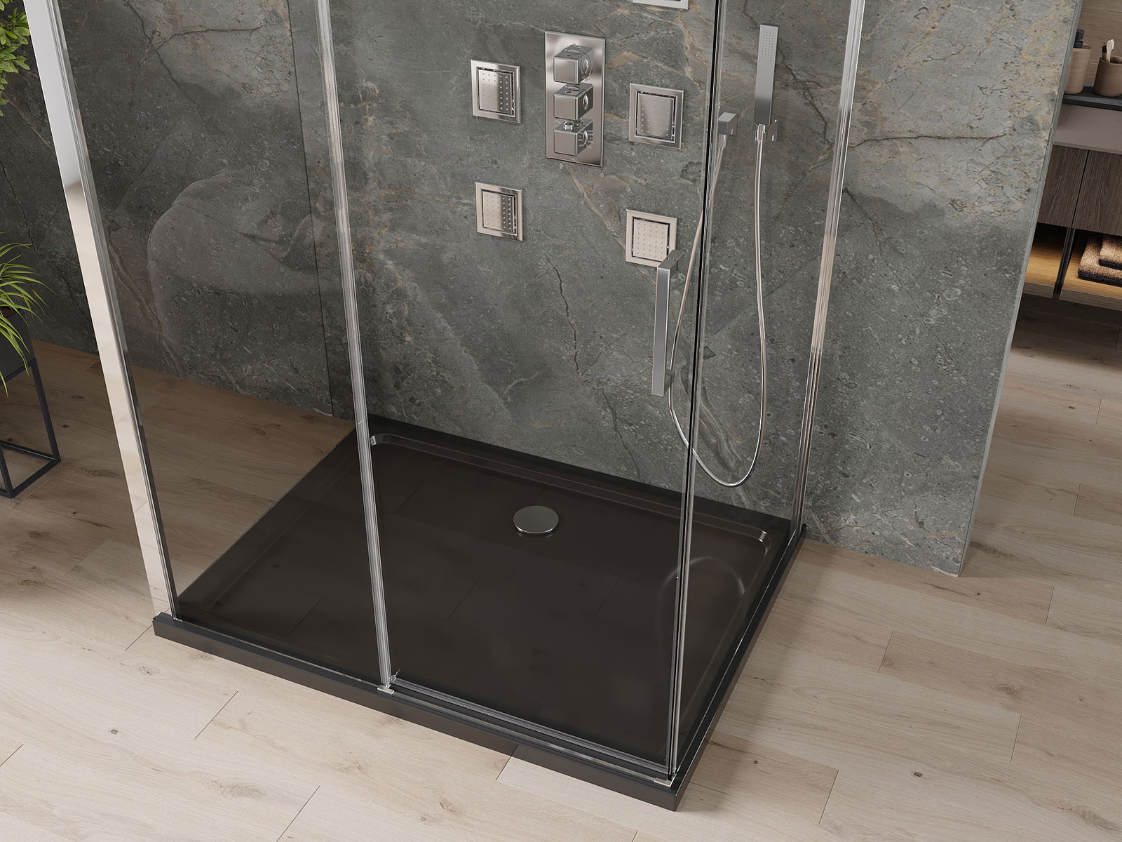 Mexen Omega-3S 3 sienų dušo kabina, stumdomos 140x100 cm, skaidri, chromas + Flat padėklas - 825-140-100-01-00-3s-4070