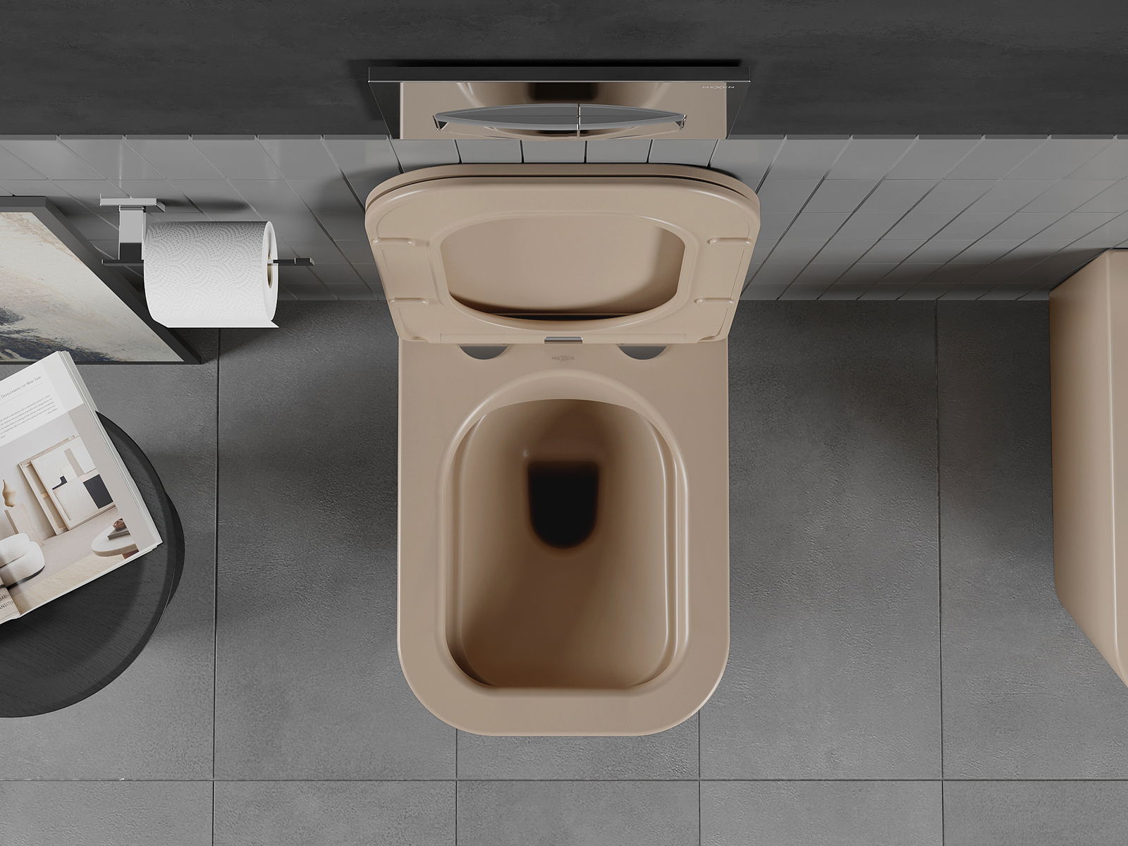 Matte keramikos paviršius puikiai pabrėžia produkto spalvos pobūdį, suteikdamas jai unikalų ir išraiškingą apdailą. Subtili matinės keramikos struktūra pristato eleganciją vonios kambaryje, sukurdama estetinę erdvę.