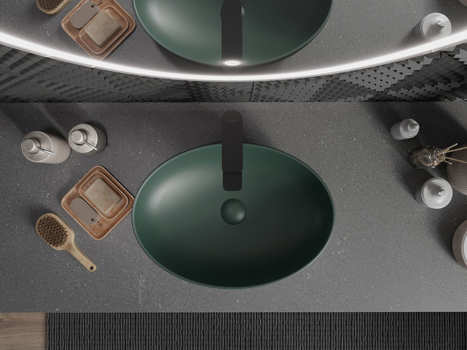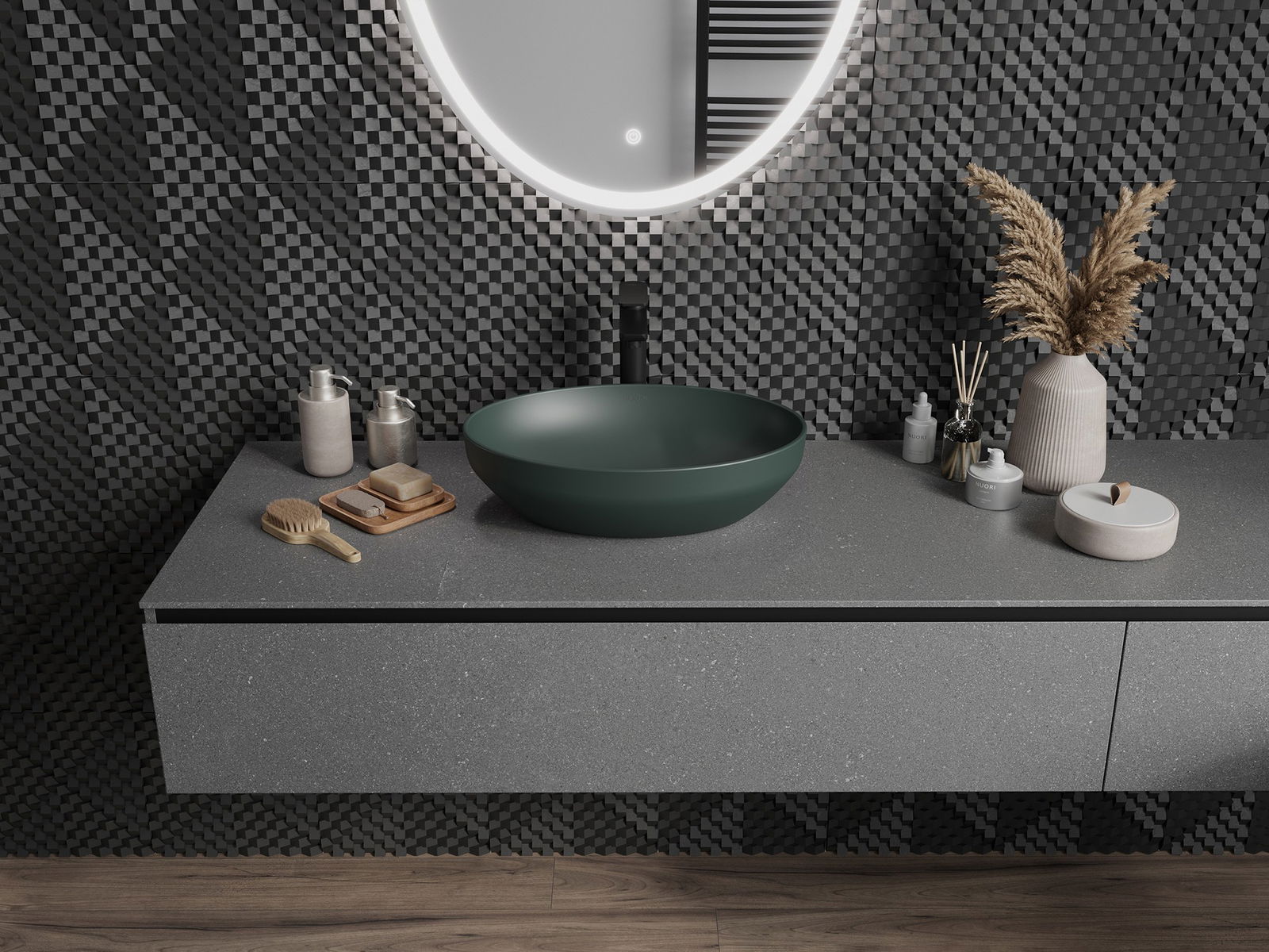 Matte keramikos paviršius puikiai pabrėžia produkto spalvos pobūdį, suteikdamas jai unikalų ir išraiškingą apdailą. Subtili matinės keramikos struktūra pristato eleganciją vonios kambaryje, sukurdama estetinę erdvę.