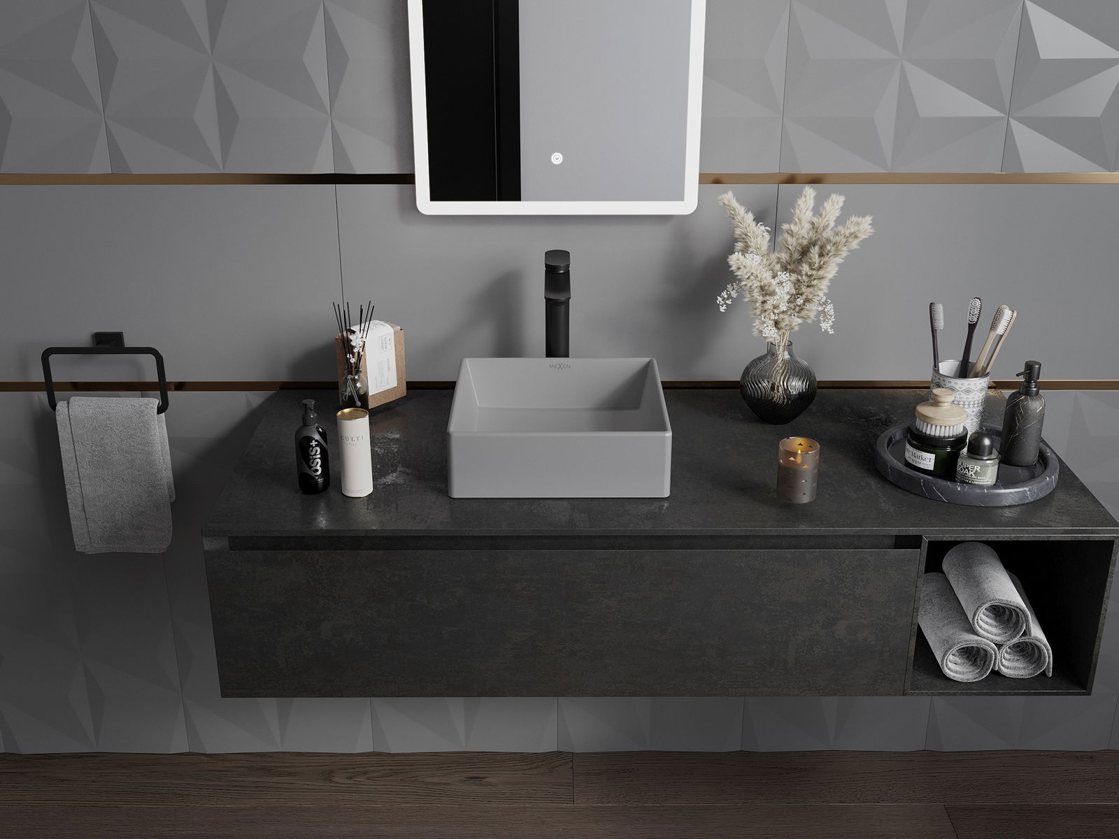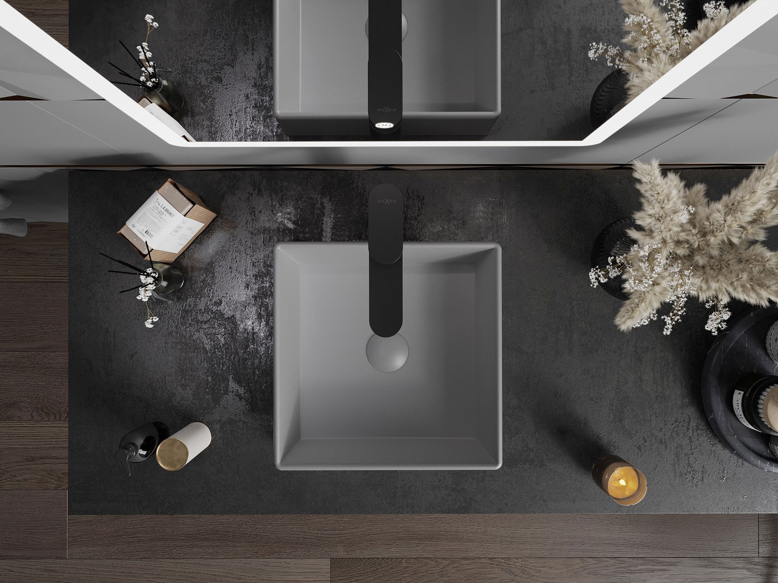 Matte keramikos paviršius puikiai pabrėžia produkto spalvos pobūdį, suteikdamas jai unikalų ir išraiškingą apdailą. Subtili matinės keramikos struktūra pristato eleganciją vonios kambaryje, sukurdama estetinę erdvę.