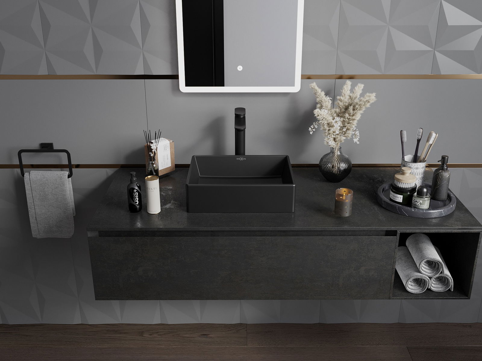 Matte keramikos paviršius puikiai pabrėžia produkto spalvos pobūdį, suteikdamas jai unikalų ir išraiškingą apdailą. Subtili matinės keramikos struktūra pristato eleganciją vonios kambaryje, sukurdama estetinę erdvę.