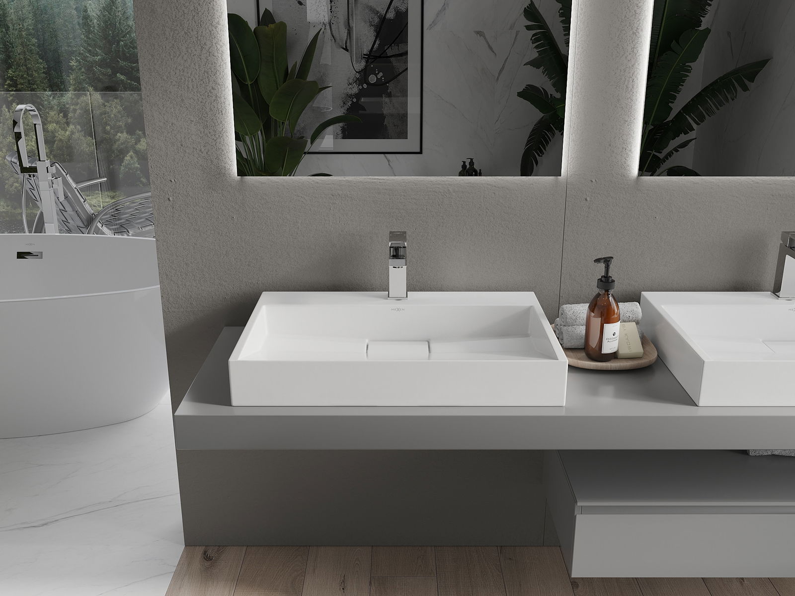 Mexen Ava stalviršio kriauklė iš konglomerato 1/O 70 x 46 cm, balta - 23017001
