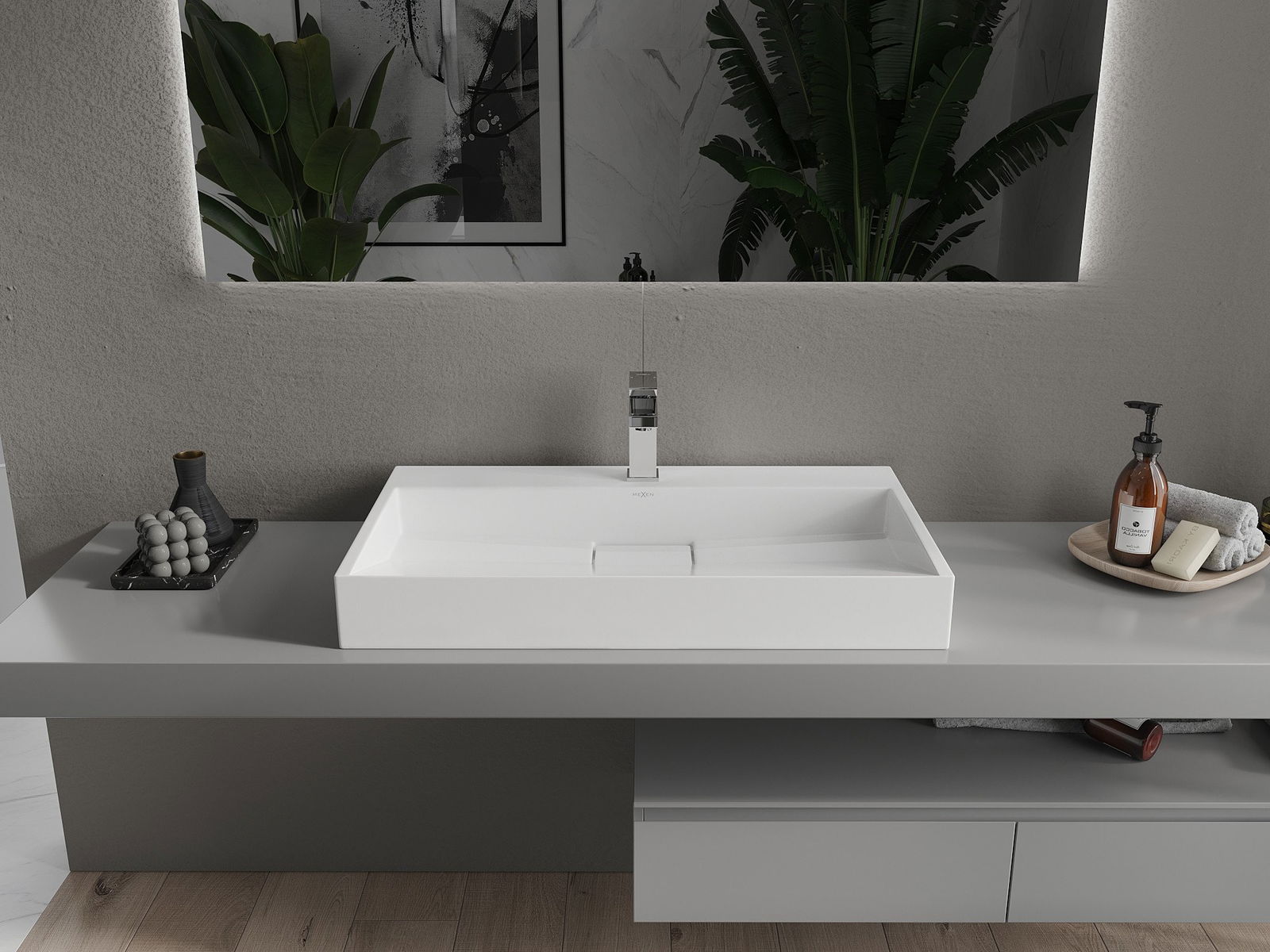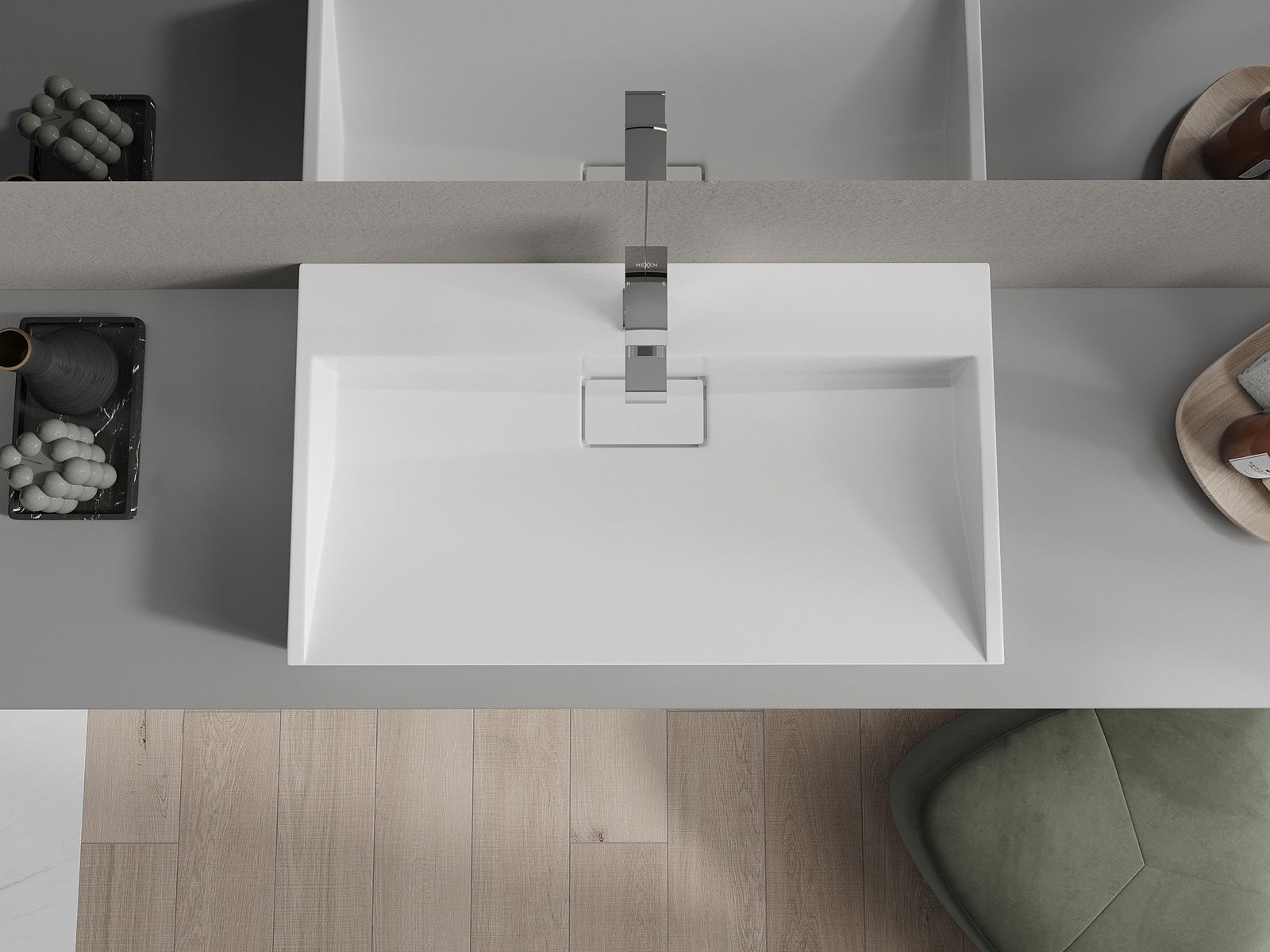 Mexen Ava praustuvas montuojamas ant stalviršio, pagamintas iš konglomerato 1/O 80 x 46 cm, baltas - 23018001