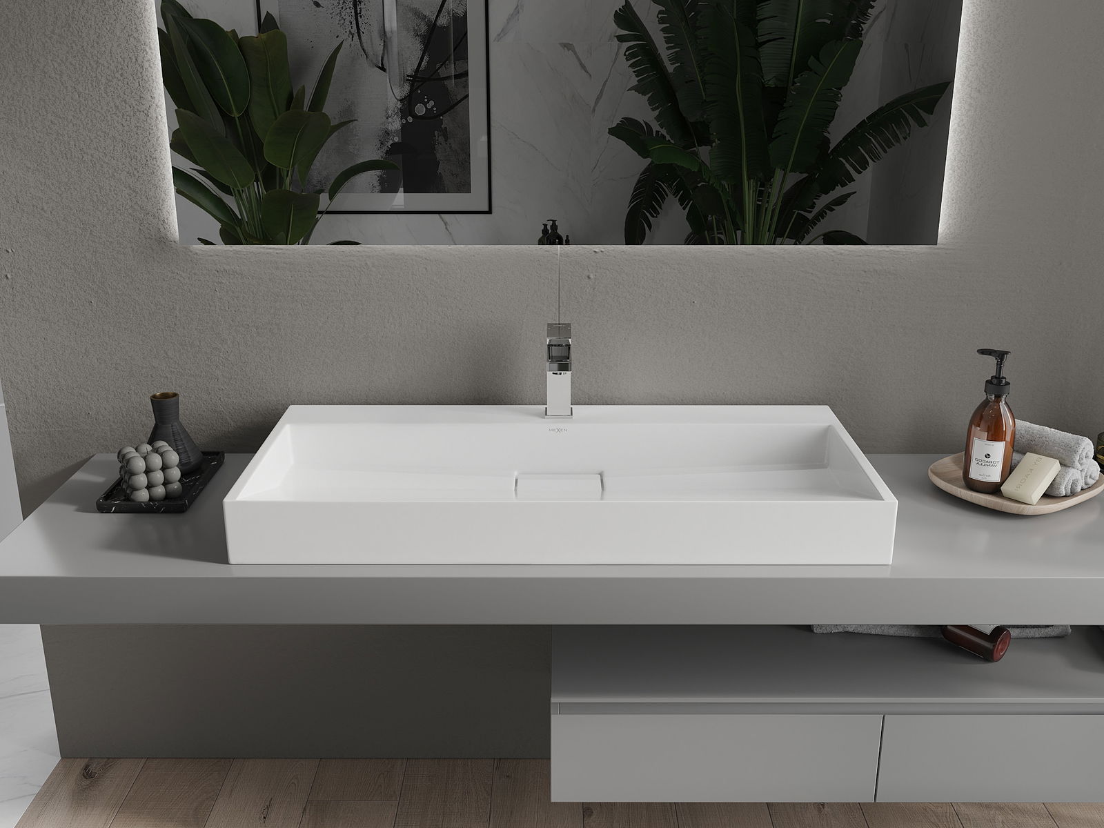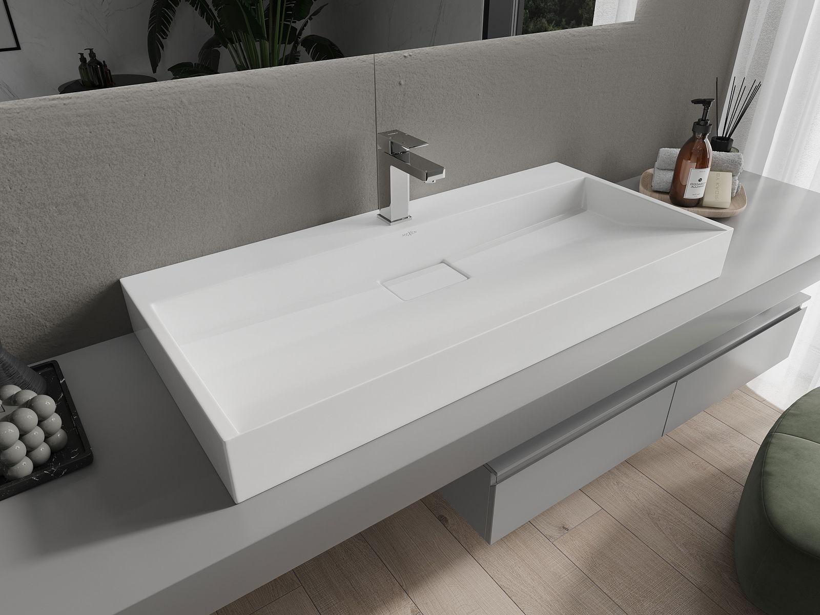 Mexen Ava stalviršio plautuvė iš konglomerato 1/O 100 x 46 cm, balta - 23011001