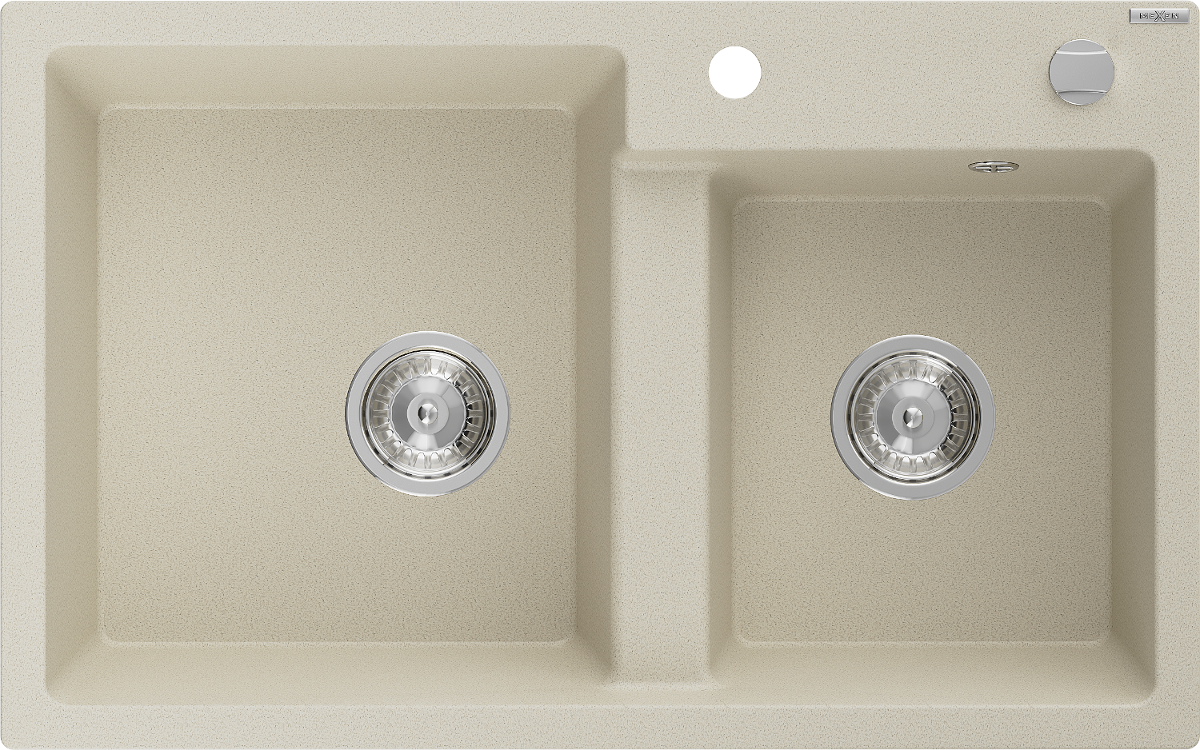 Mexen Tomas granitinis dviejų skyrių plautuvė 800 x 500 mm, smėlinė, chromuotas sifonas - 6516802000-69