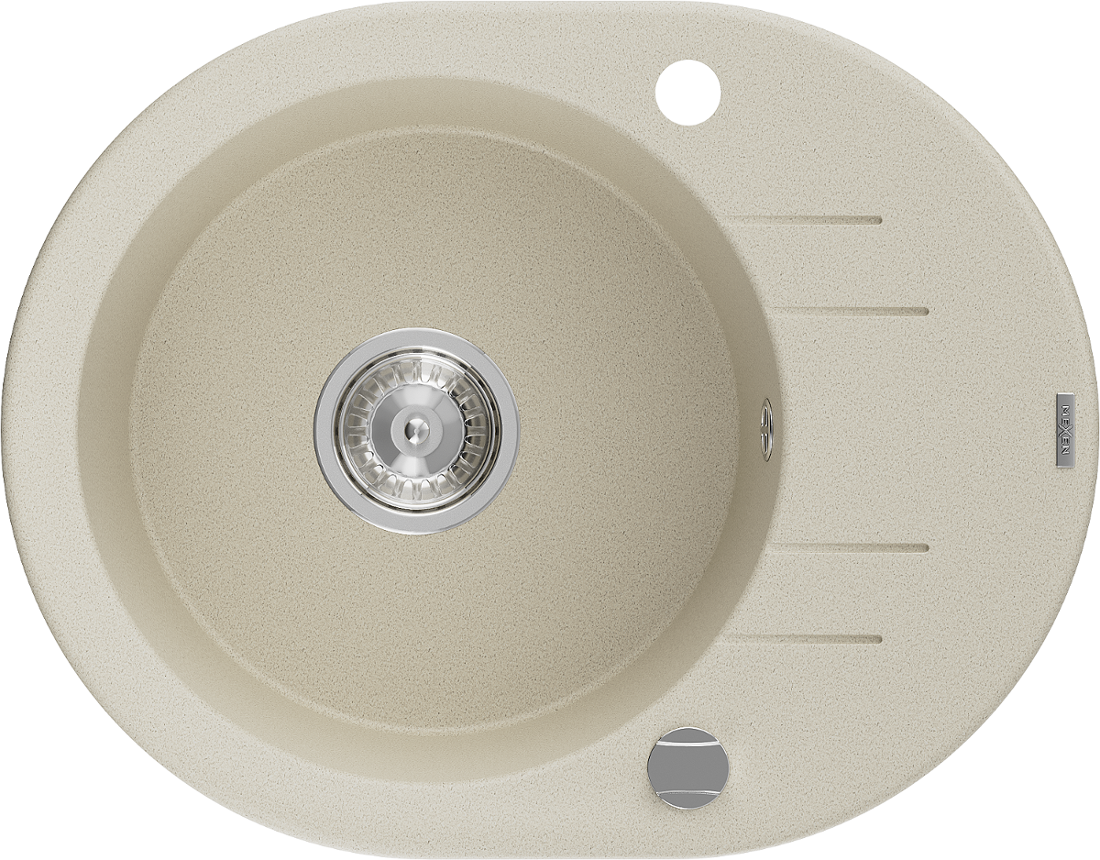 Mexen Kevin 1-komorų granitinė plautuvė su nusausintuvu 586 x 458 mm, smėlio spalvos, chromuotas sifonas - 6517581005-69