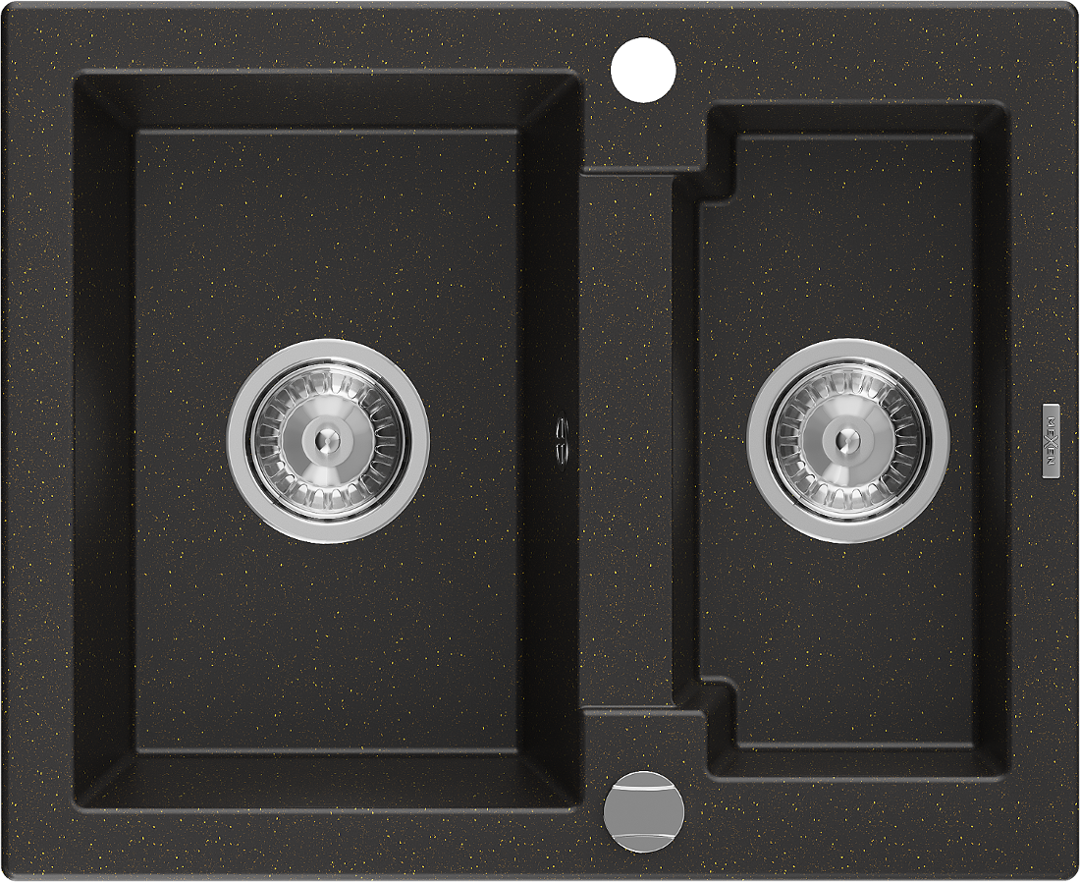 Mexen Carlos granito kriauklė 1,5-dalių 582 x 475 mm, juoda/auksinė metalika, chrominis sifonas - 6518581500-75