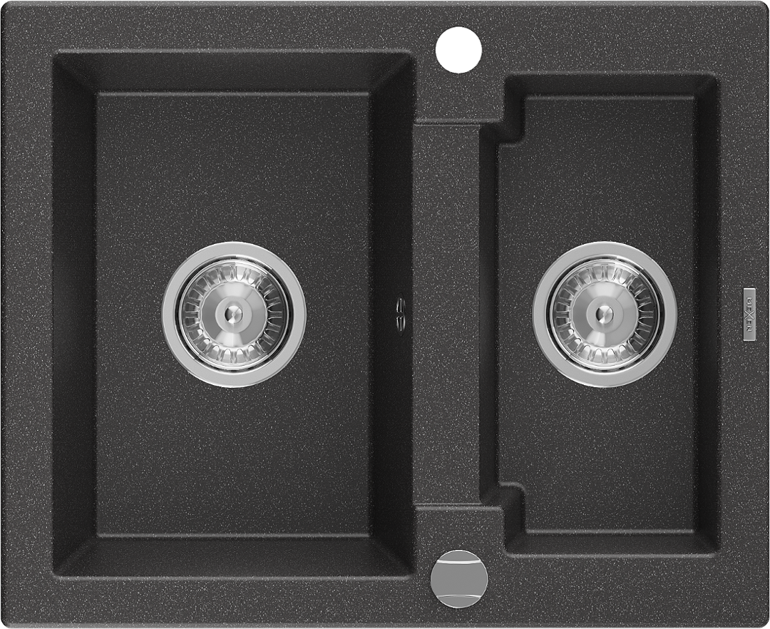 Mexen Carlos granitinė 1,5 kambario virtuvės plautuvė 582 x 475 mm, juoda dėmėta, chromuotas sifonas - 6518581500-76