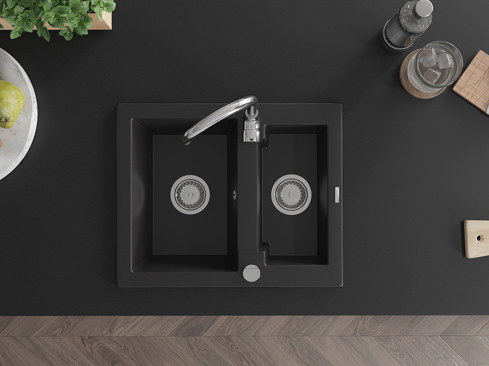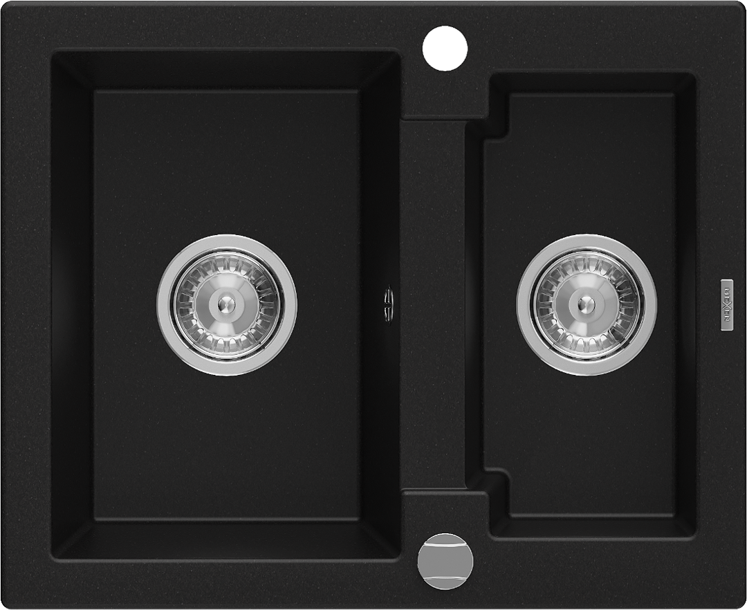 Mexen Carlos granito plautuvė 1,5 talpos 582 x 475 mm, juoda, chrom sifonas - 6518581500-77